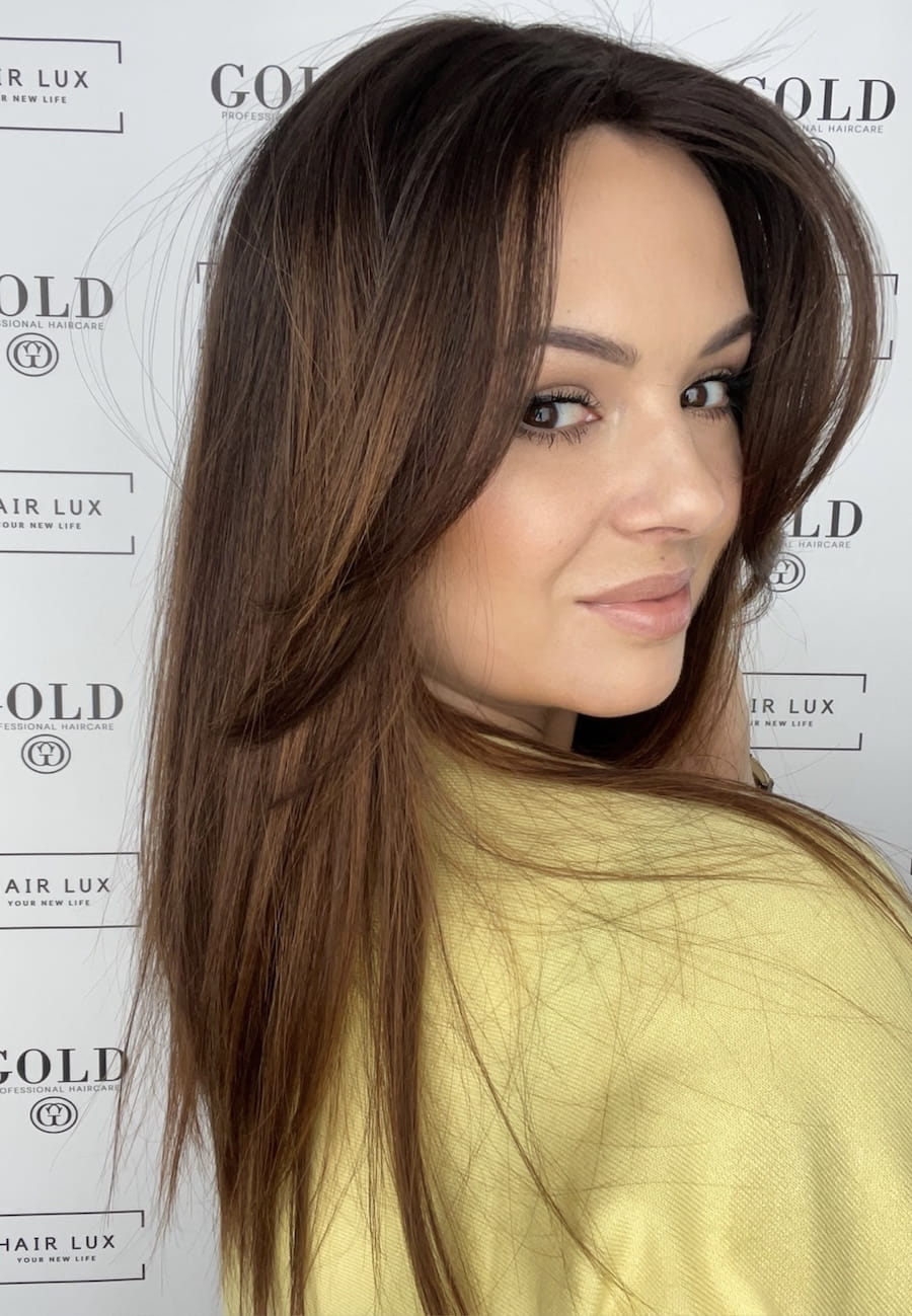 Gosia 35 cm M peruka naturalna całościowa brąz z refleksami