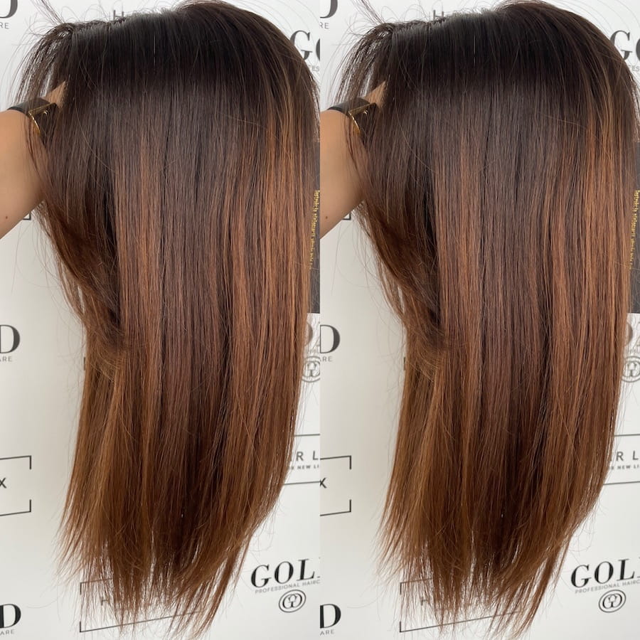 Kolor - Ciemny brąz podstawa, pasemka, ombre