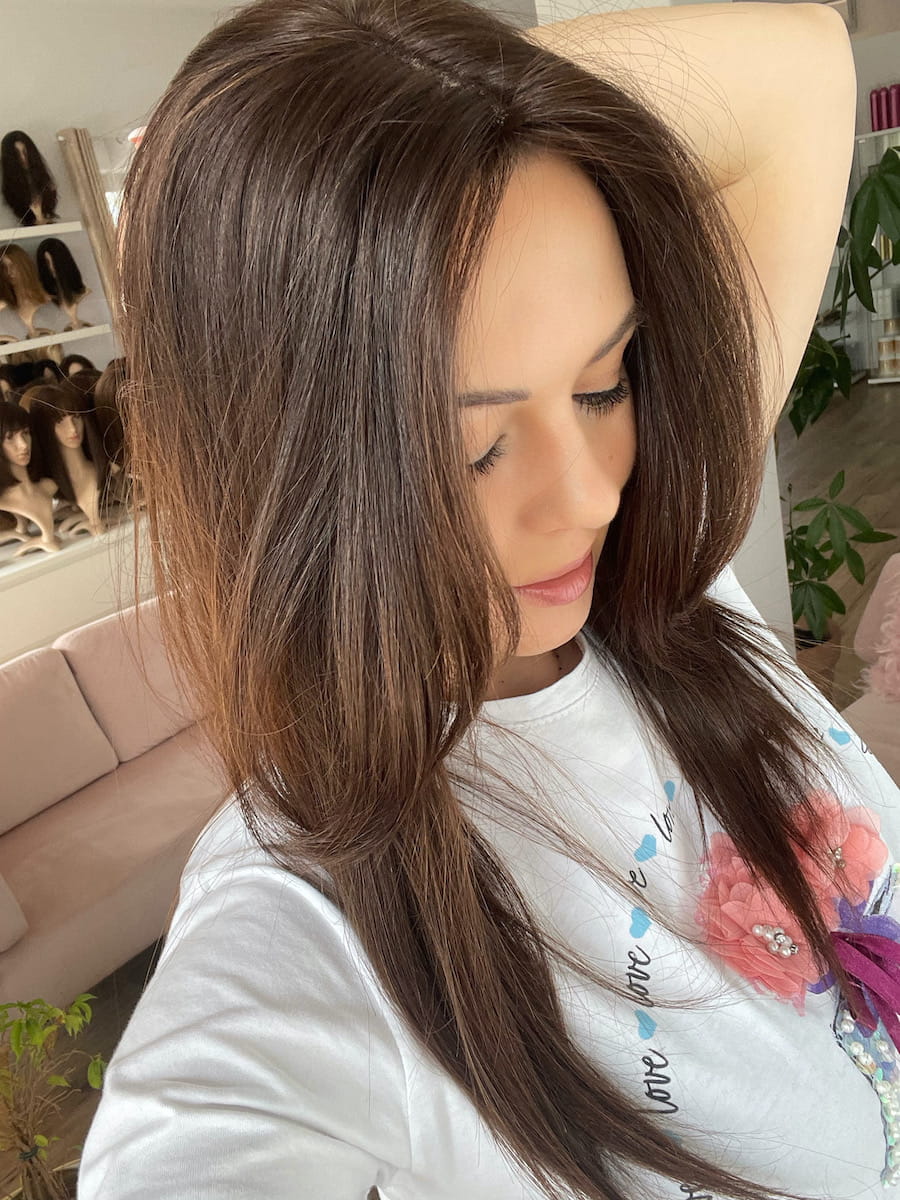 Lucy II 20x20 55 cm topper z włosów naturalnych  ombre brąz   fdsafasfsacxadwwr Lucy II 20x20 55 cm topper z włosów naturalnych ombre brąz