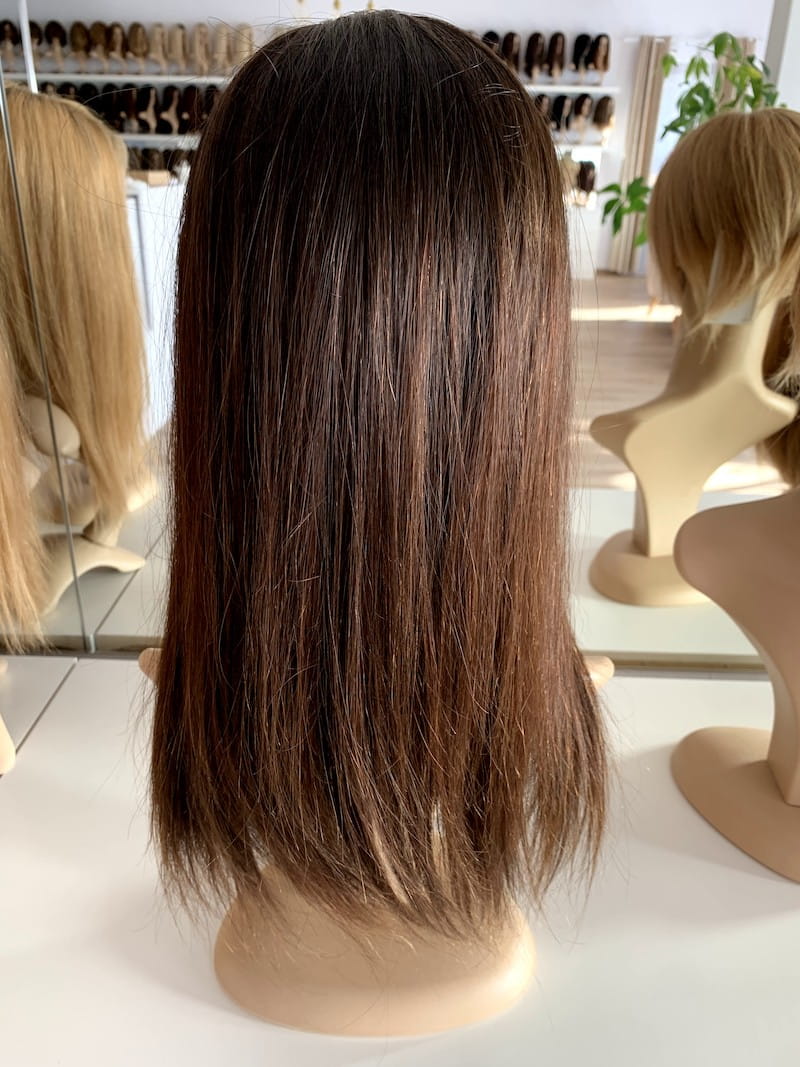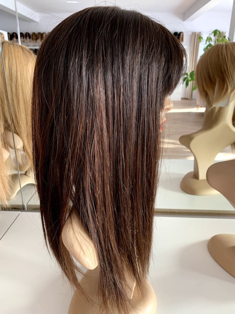Lucy II 45 cm M z grzywką silk peruka naturalnaciemny brąz ombre