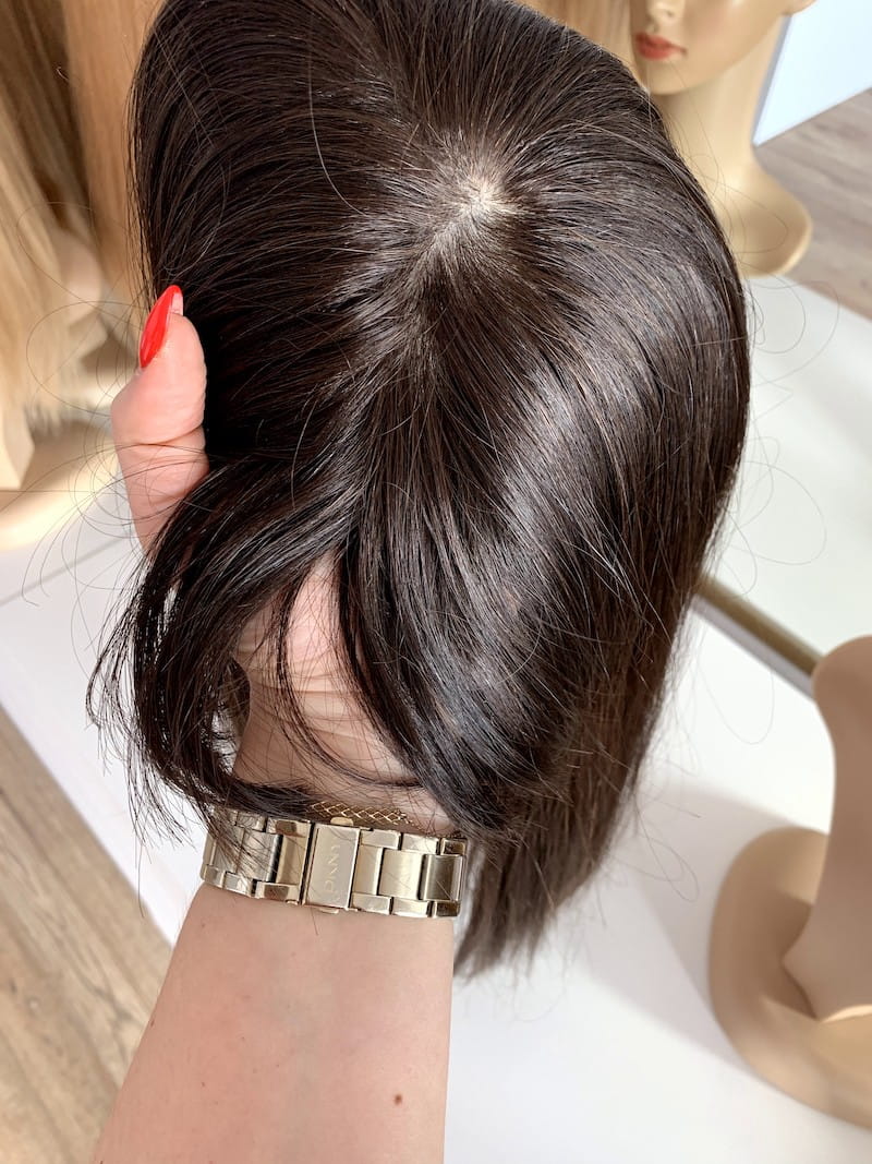Lucy II z grzywką na boki 20x20 45-50 cm topper z włosów naturalnych ombre brąz
