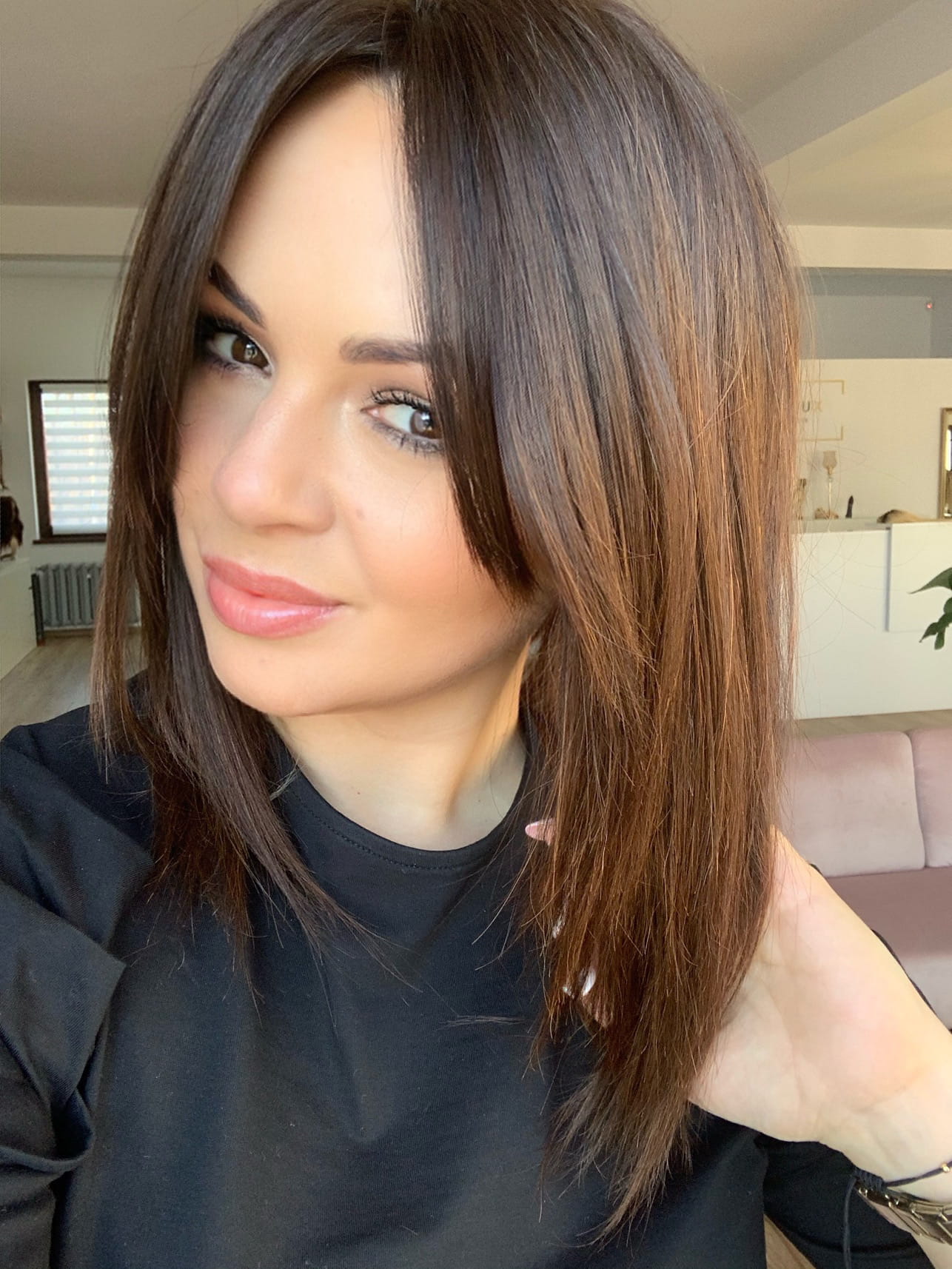 Gosia 35 cm M peruka naturalna całościowa brąz z refleksami