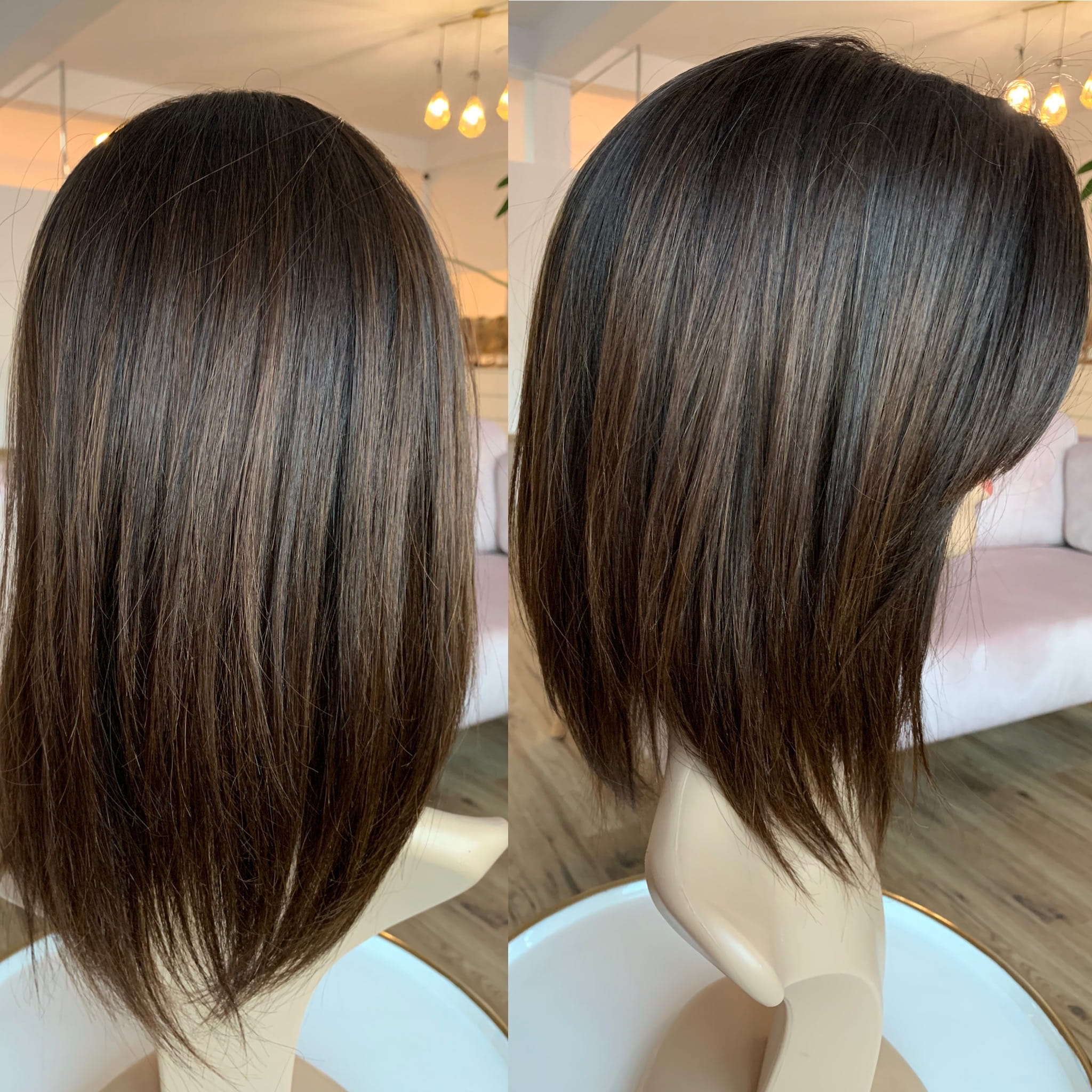 Long Bob Lucy II 35 cm M sillk z grzywką peruka naturalna ciemny brąz ombre
