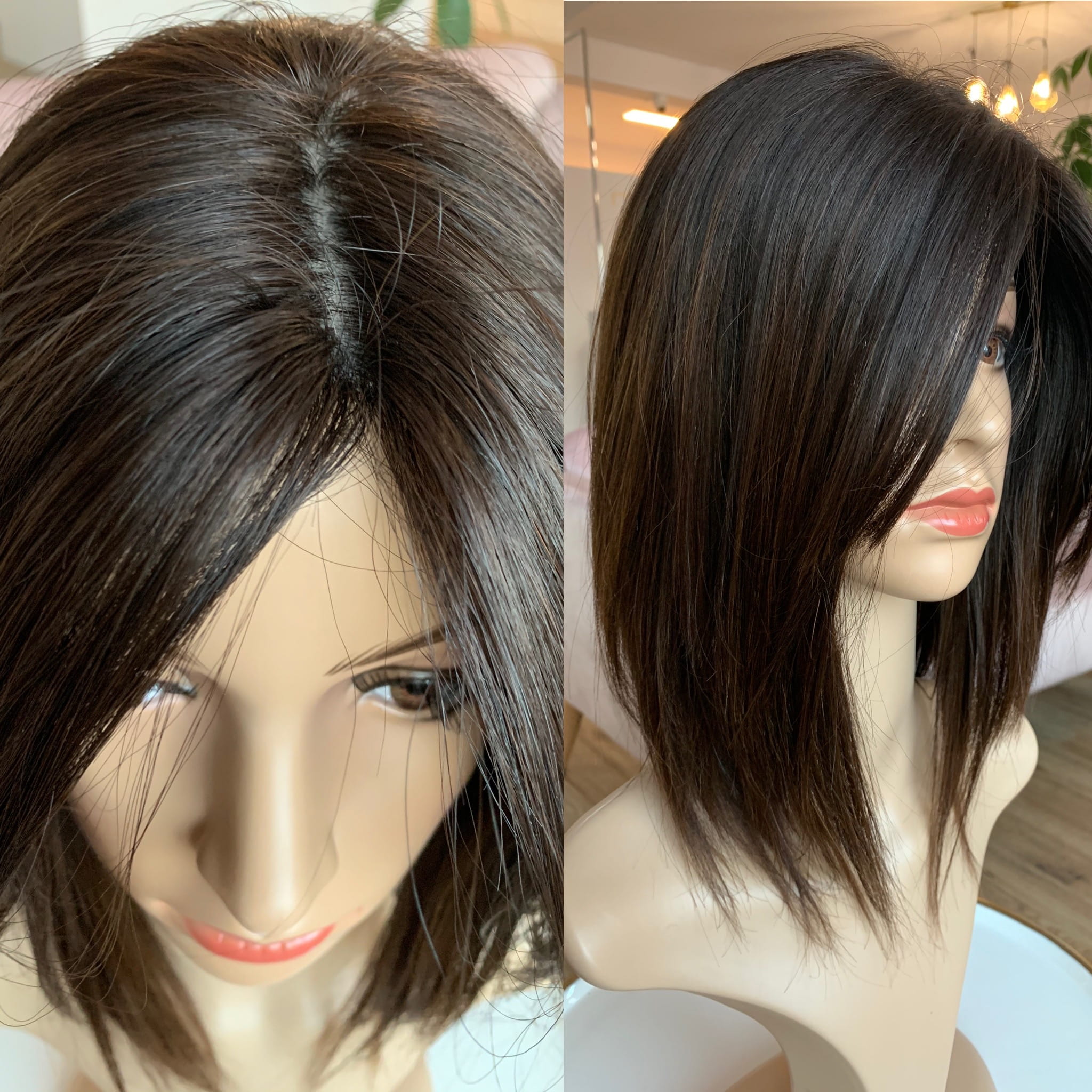 Lucy II 40cm S silk z grzywką peruka naturalna ombre ciemny brąz