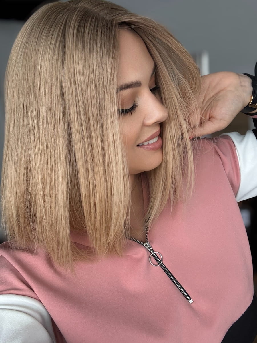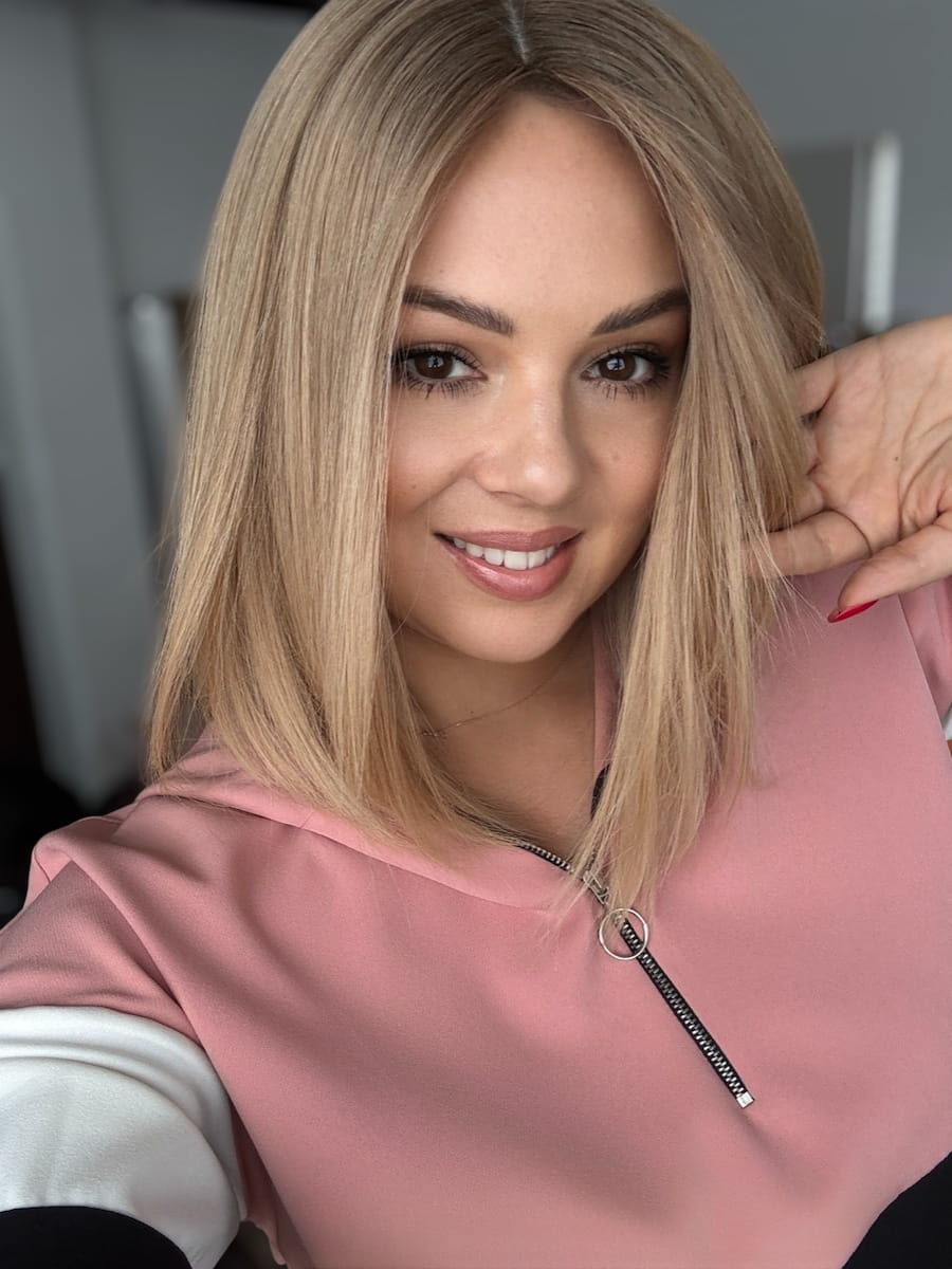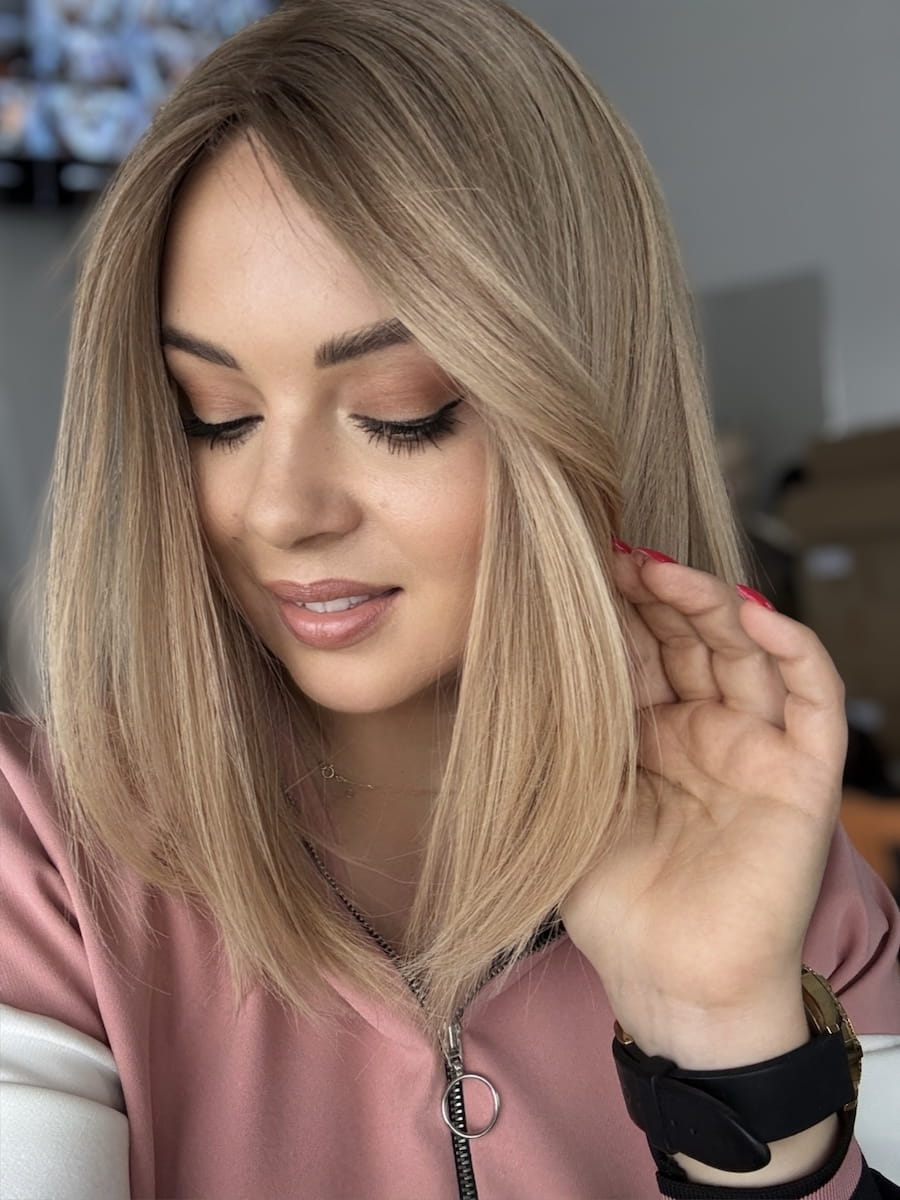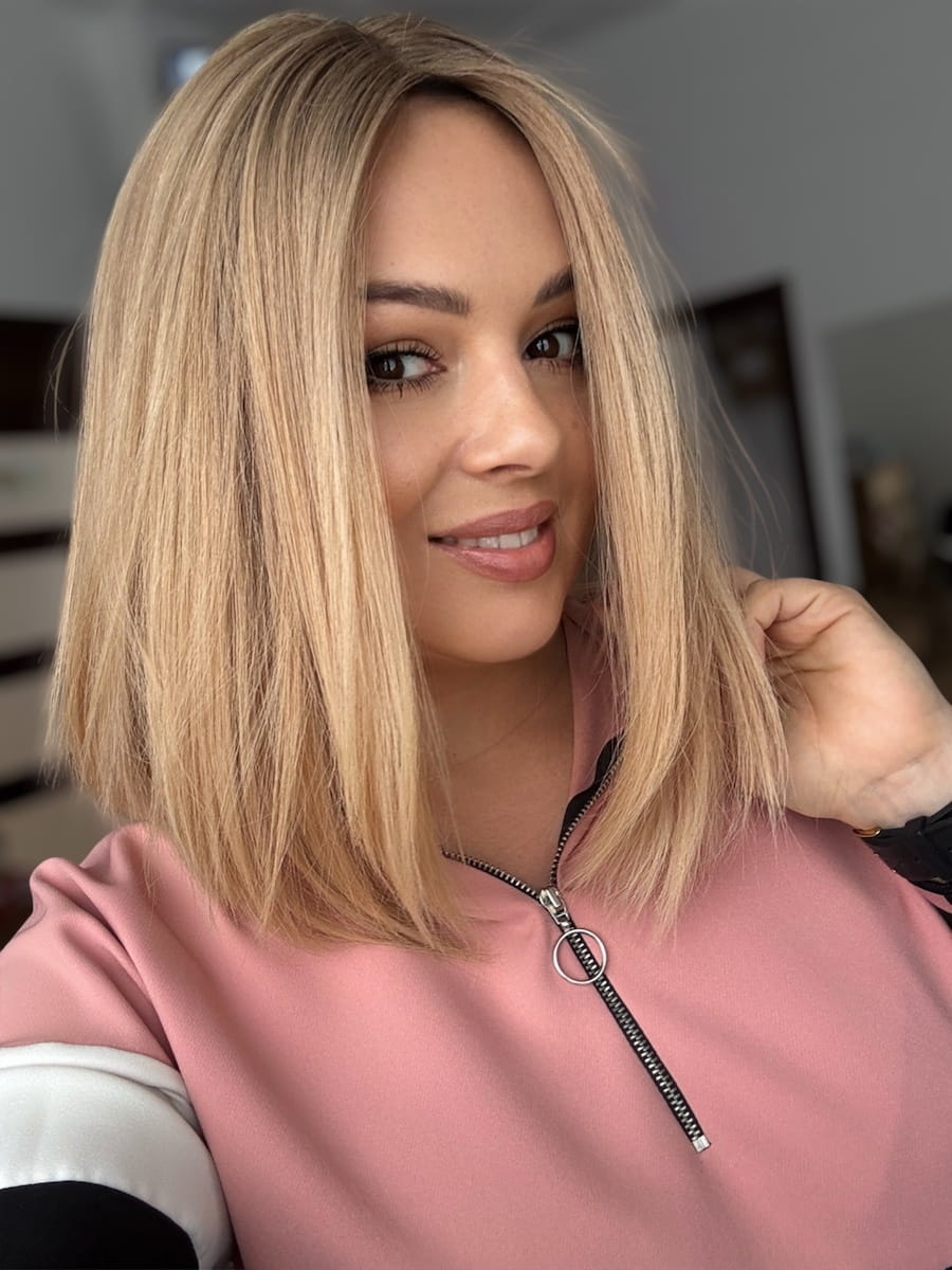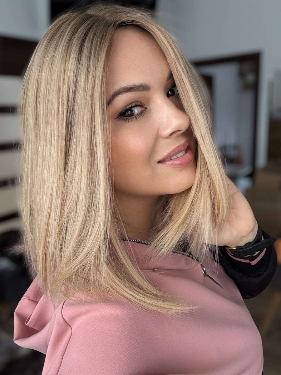 Kolor -beżowy blond z delikatnym odrostem