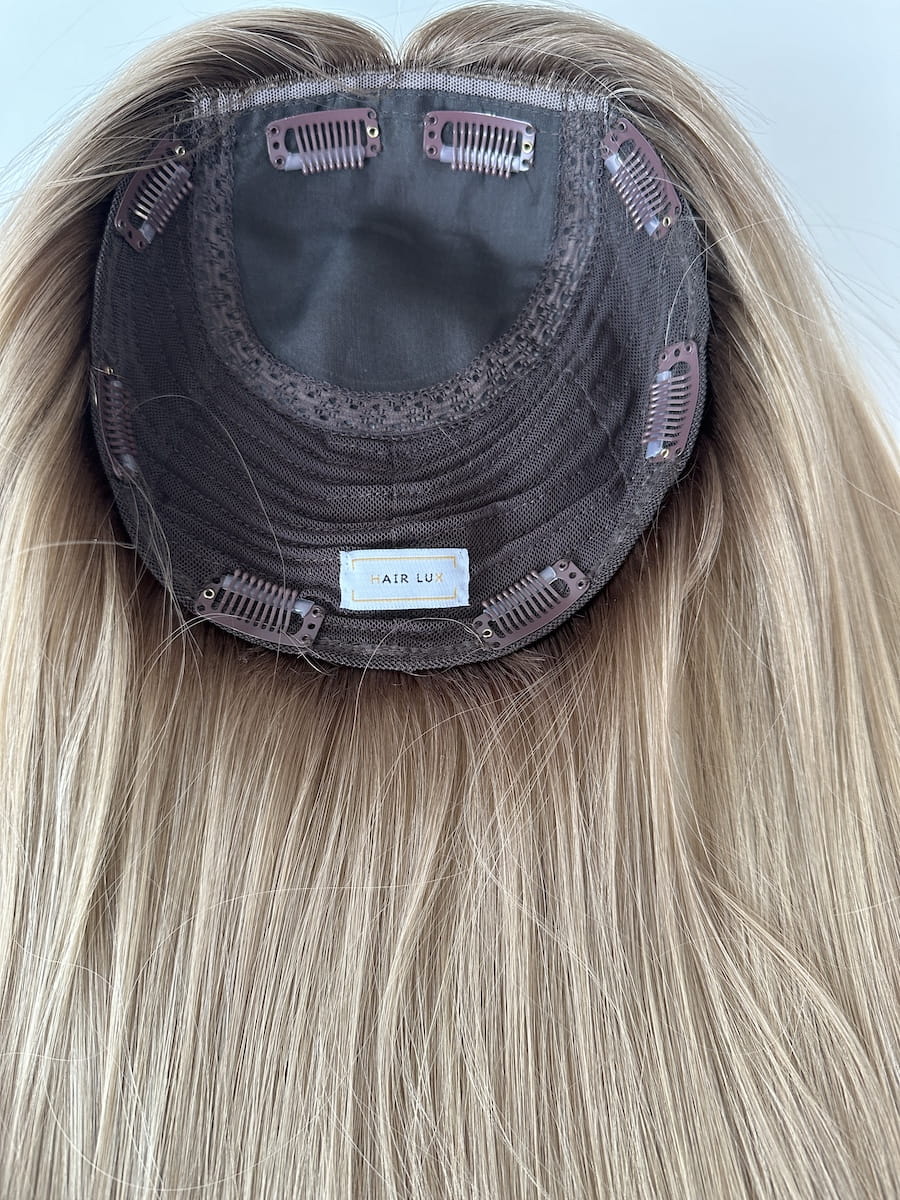 Mila premium 20x20 Topper z włosów naturalnych 35cm bezowy blond