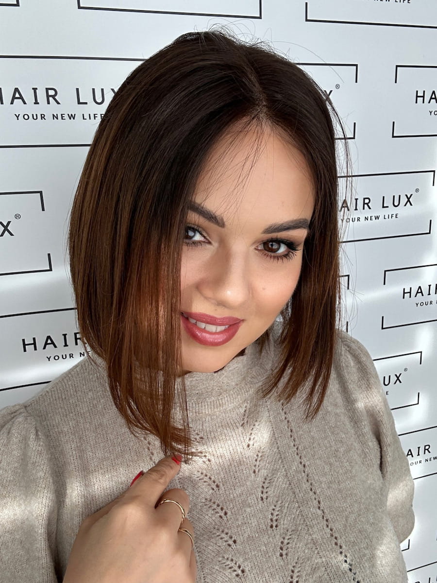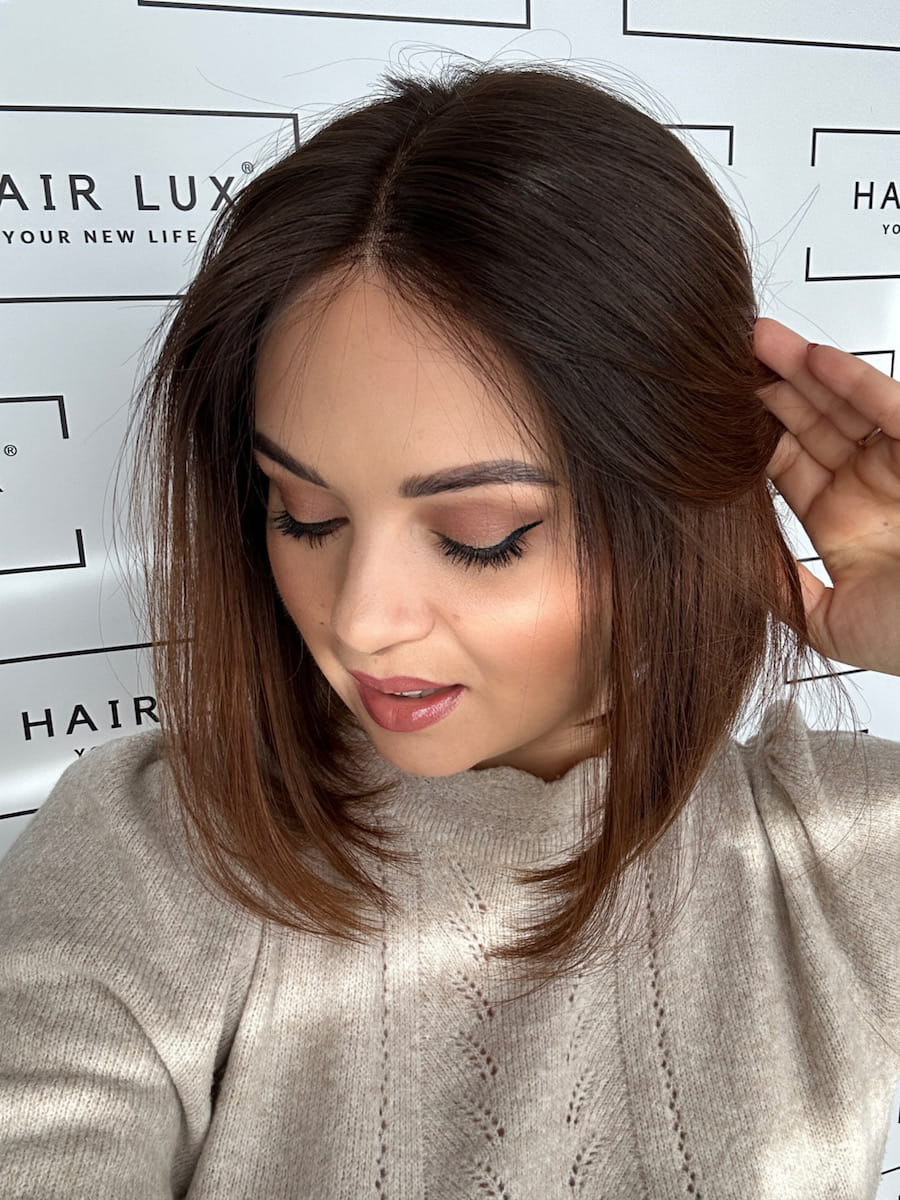 Peruka naturalna Lucy II S Lace 35 cm Long BOB ombre brąz