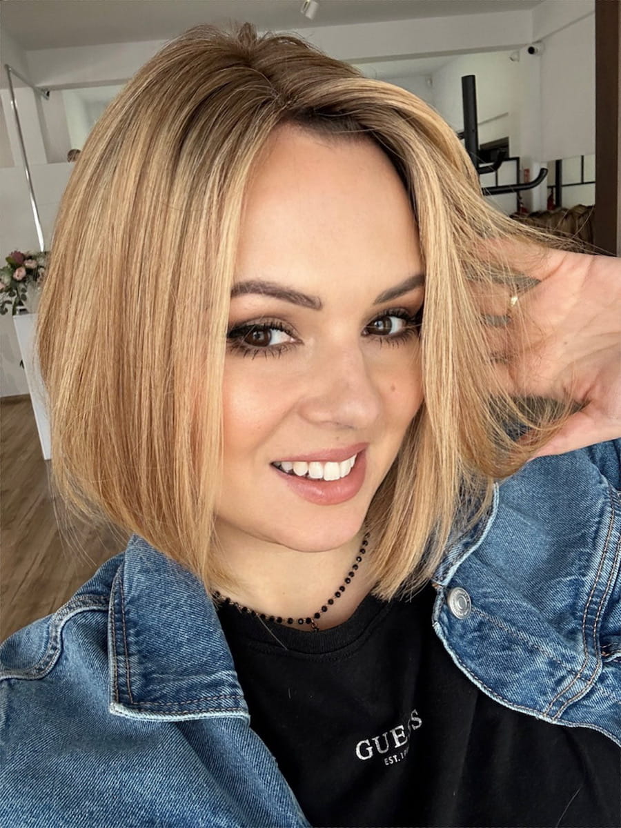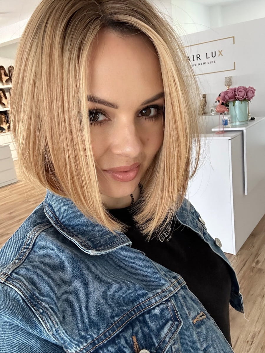 Lara S peruka całościowa z włosów naturalnych ciepły blond baleyage 40cm