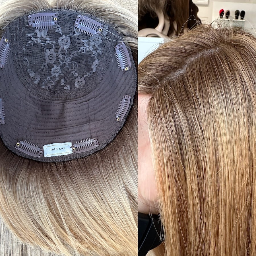 Topper to zagęszczenie włosów. Szczególnie polecany dla kobiet borykających się z problemem przerzedzonych włosów na szczycie głowy. Jest nieocenionym rozwiązaniem w przypadku łysienia androgenowego, telogenowego i innych schorzeń związanych z lichymi kosmykami. Jest wspaniałą alternatywą do zagęszczenia włosów innymi metodami typu taśmy czy ringi.