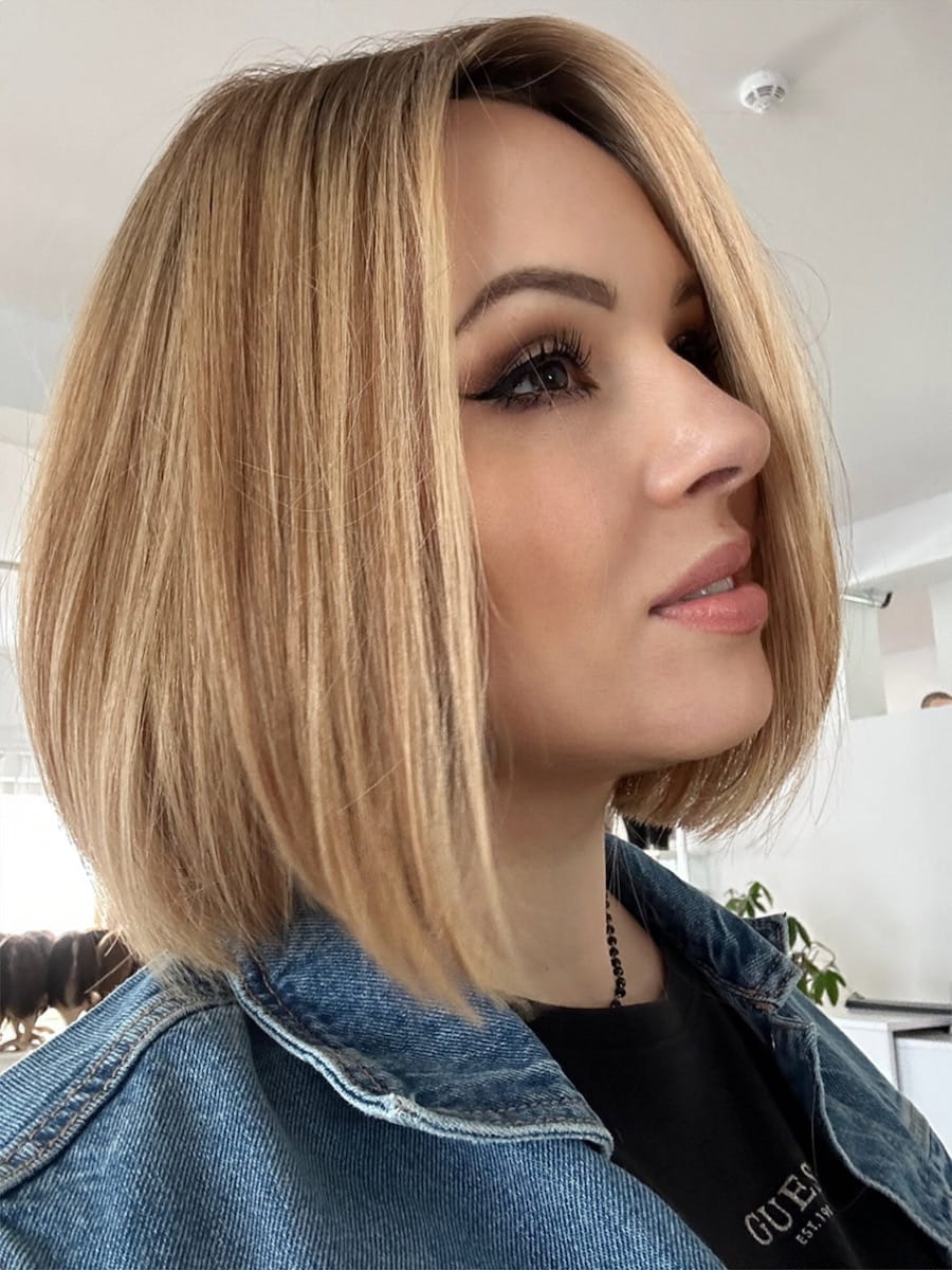 Long BOB Sylwia lace 35 S peruka całościowa z włosów naturalnych chłodny blond z odrostem