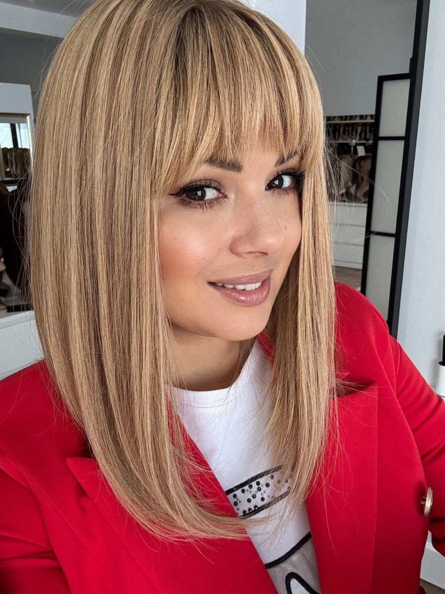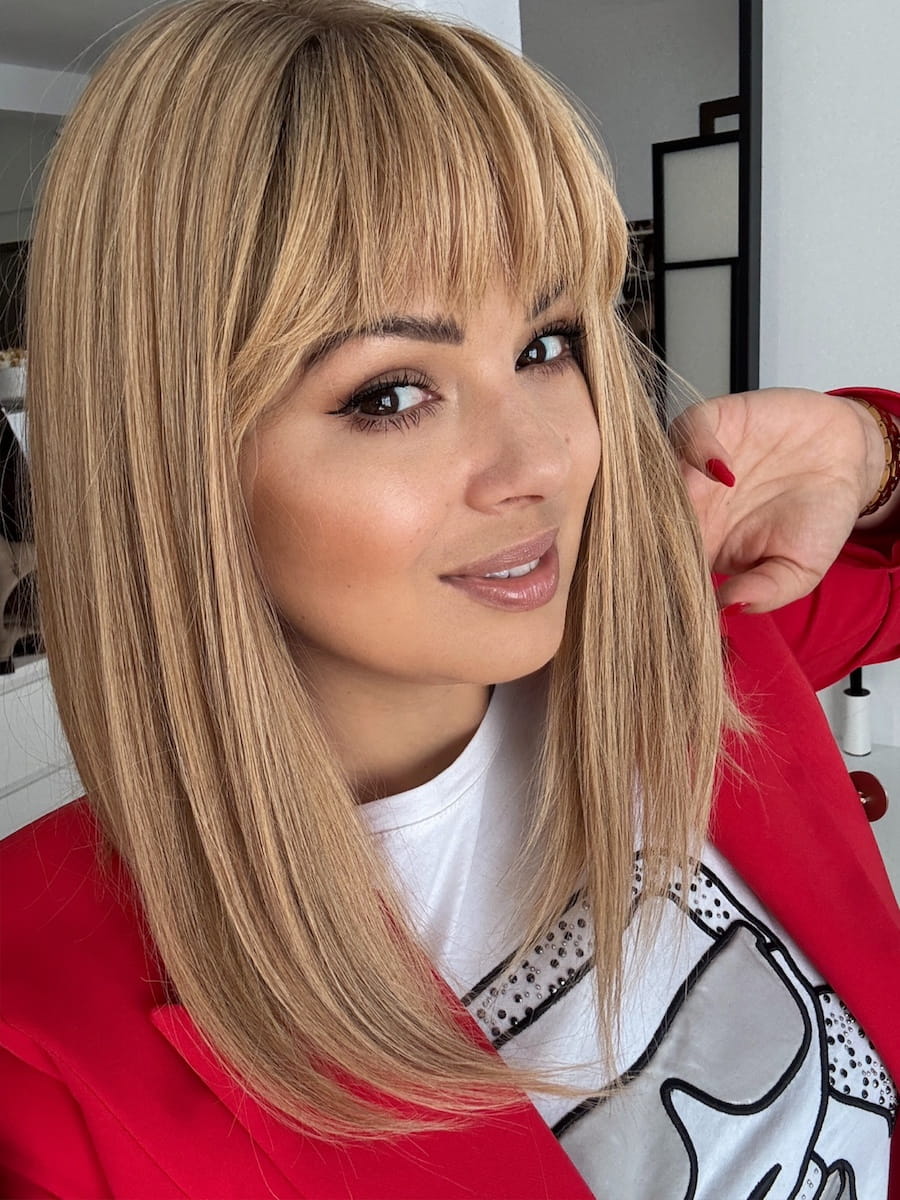 Rita z grzywką 40cm S peruka naturalna ciepły blond baleyage