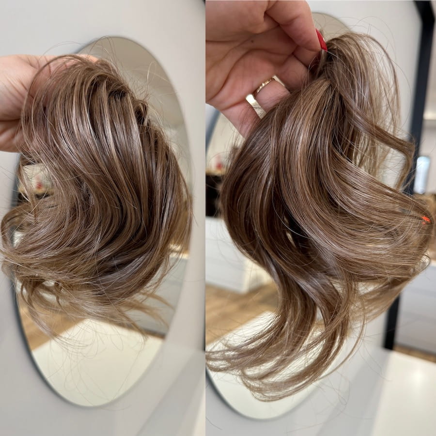 Nasze gumki, wykonane z wysokiej jakości termoochronnych włosów syntetycznych, nie tylko imitują naturalny wygląd, ale również charakteryzują się doskonałą podatnością na prostowanie i kręcenie.