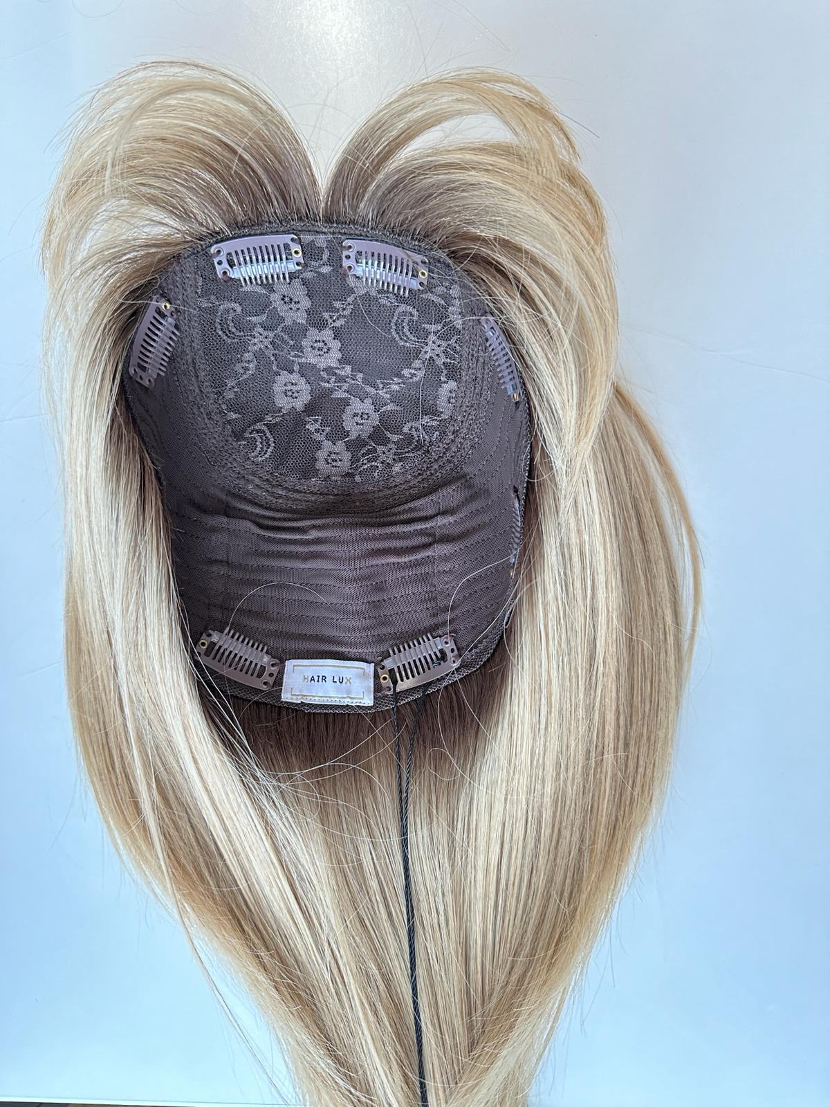Lara 40cm 20x20cm Topper do zagęszczenia clip in jasny blond z odrostem fdsafasfsacxadwwr Lara 40cm 20x20cm Topper do zagęszczenia clip in jasny blond z odrostem