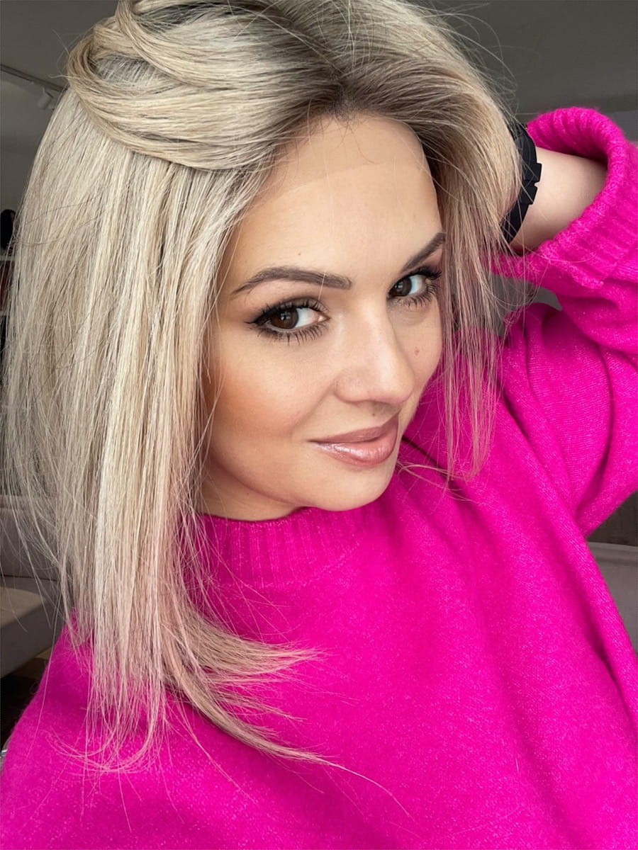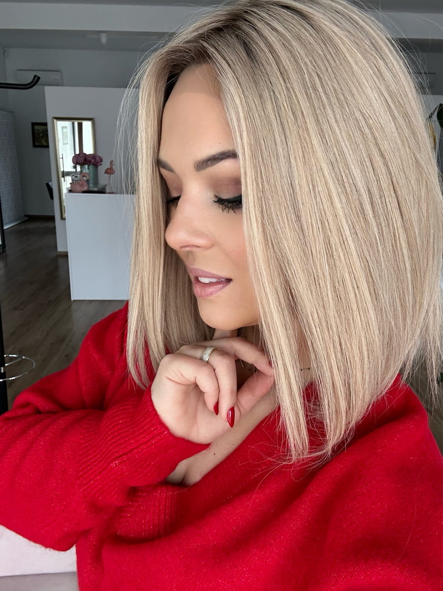 Sylwia 35 S silk peruka całościowa z włosów naturalnych chłodny blond z odrostem