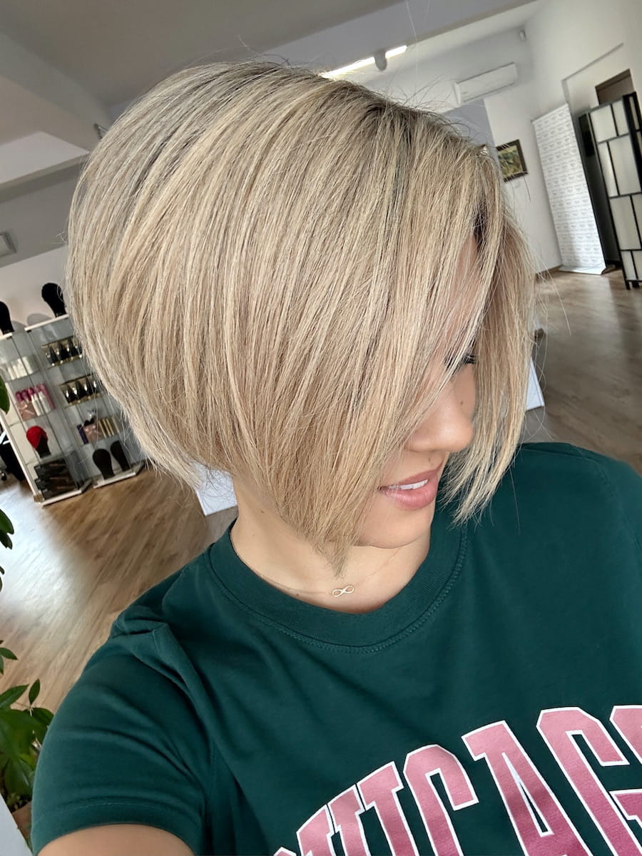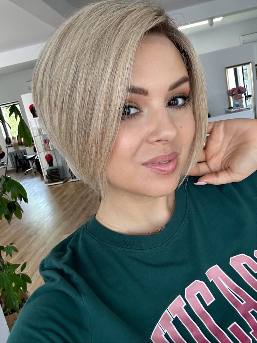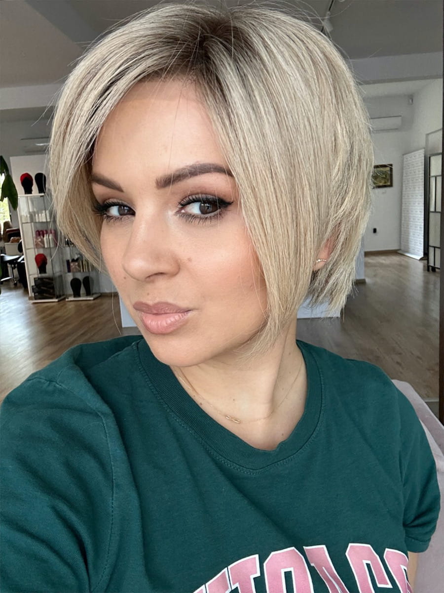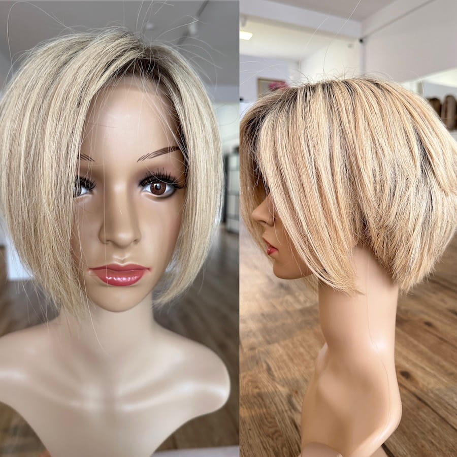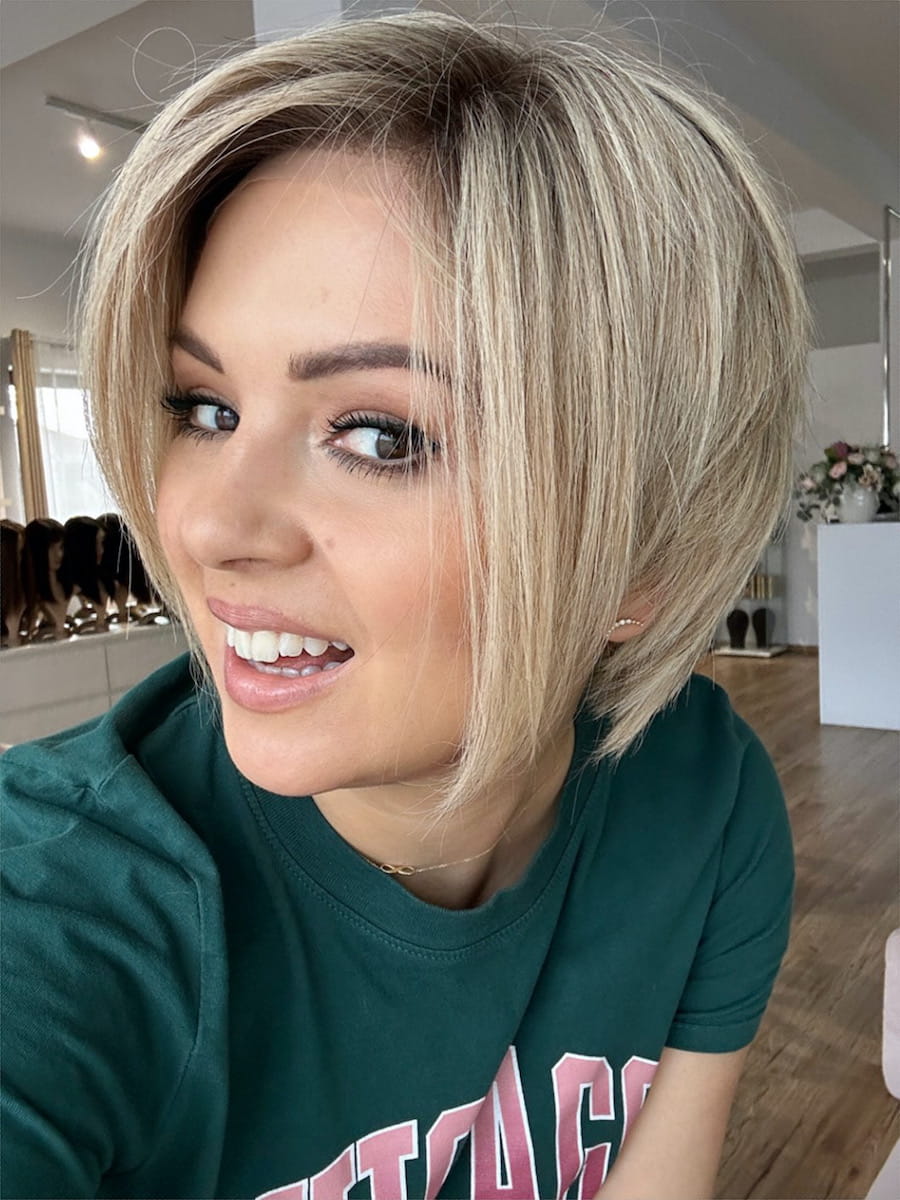 Sylwia S 25 cm krótka peruka z włosów naturalnych blond z delikatnym odrostem