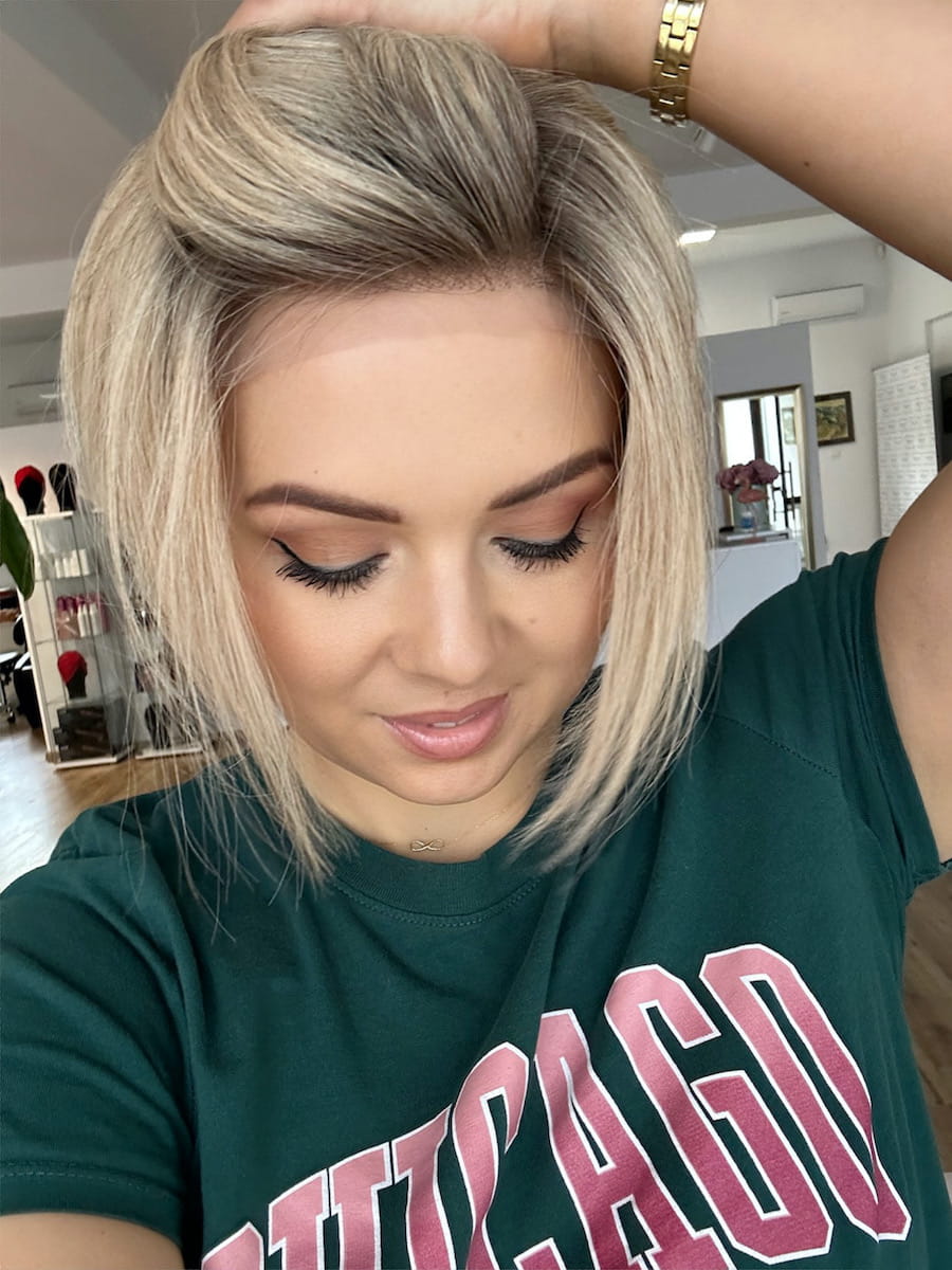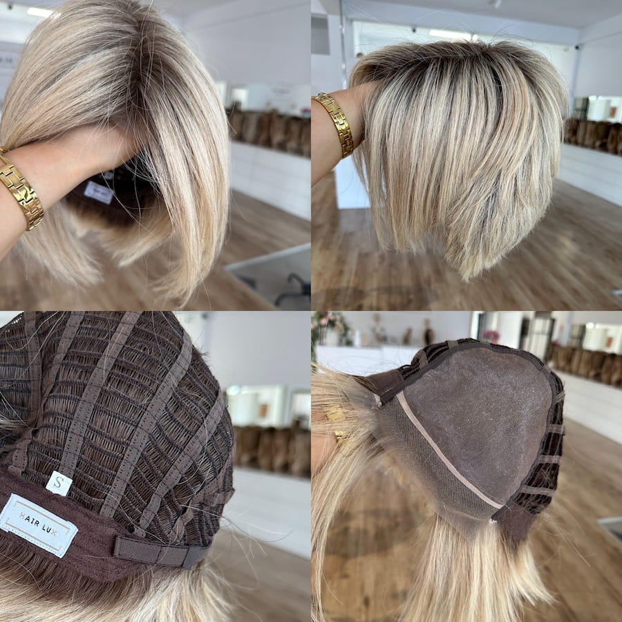 Peruka na pełnym czepku z wkładką z mono, dzięki czemu swobodnie możesz zmieniać przedziałek.