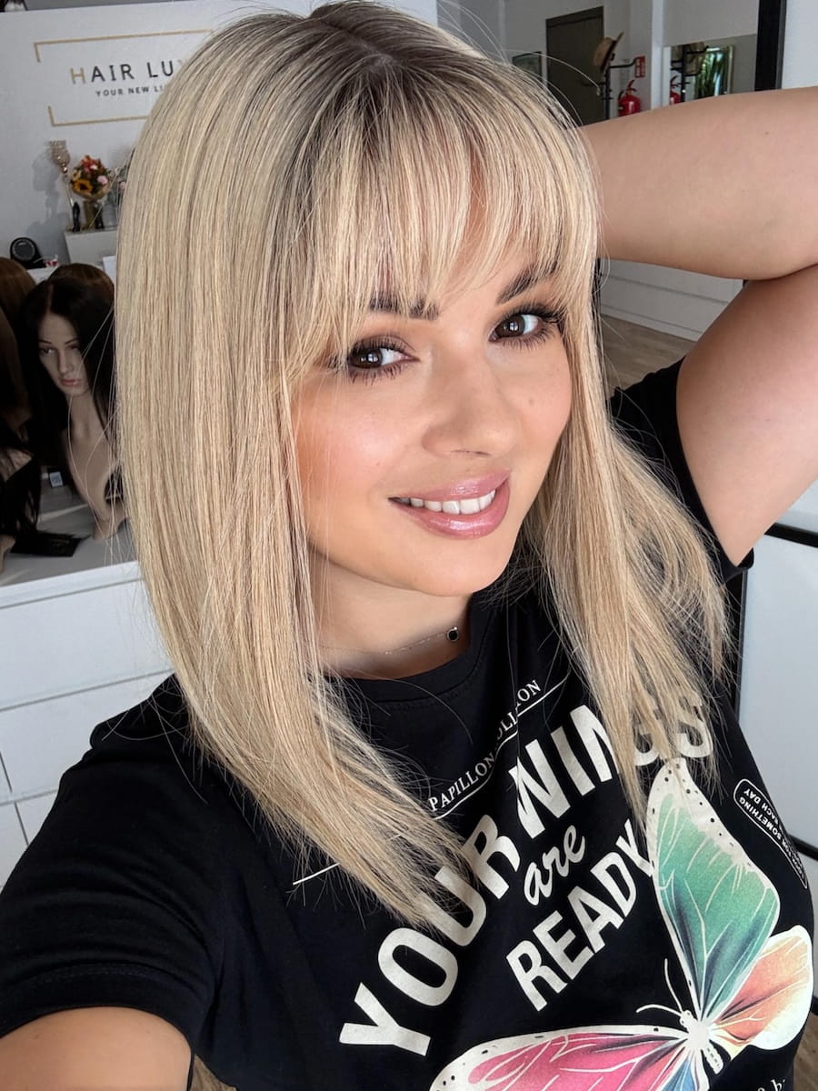 Lara z grzywką 45-50cm 20x20 Topper do zagęszczenia clip in jasny blond z odrostem