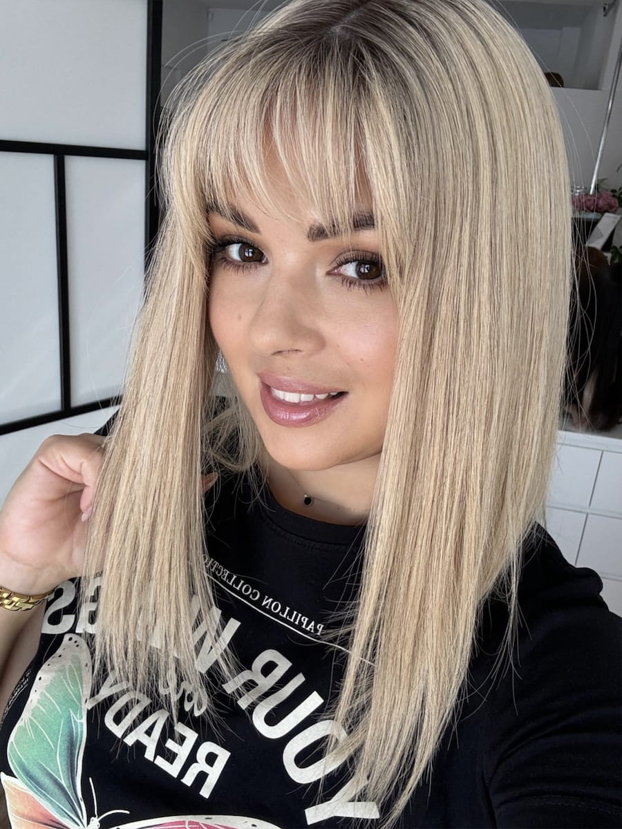 Peruka Lara M z drobną przedłużaną grzywką 40 cm słoneczny blond