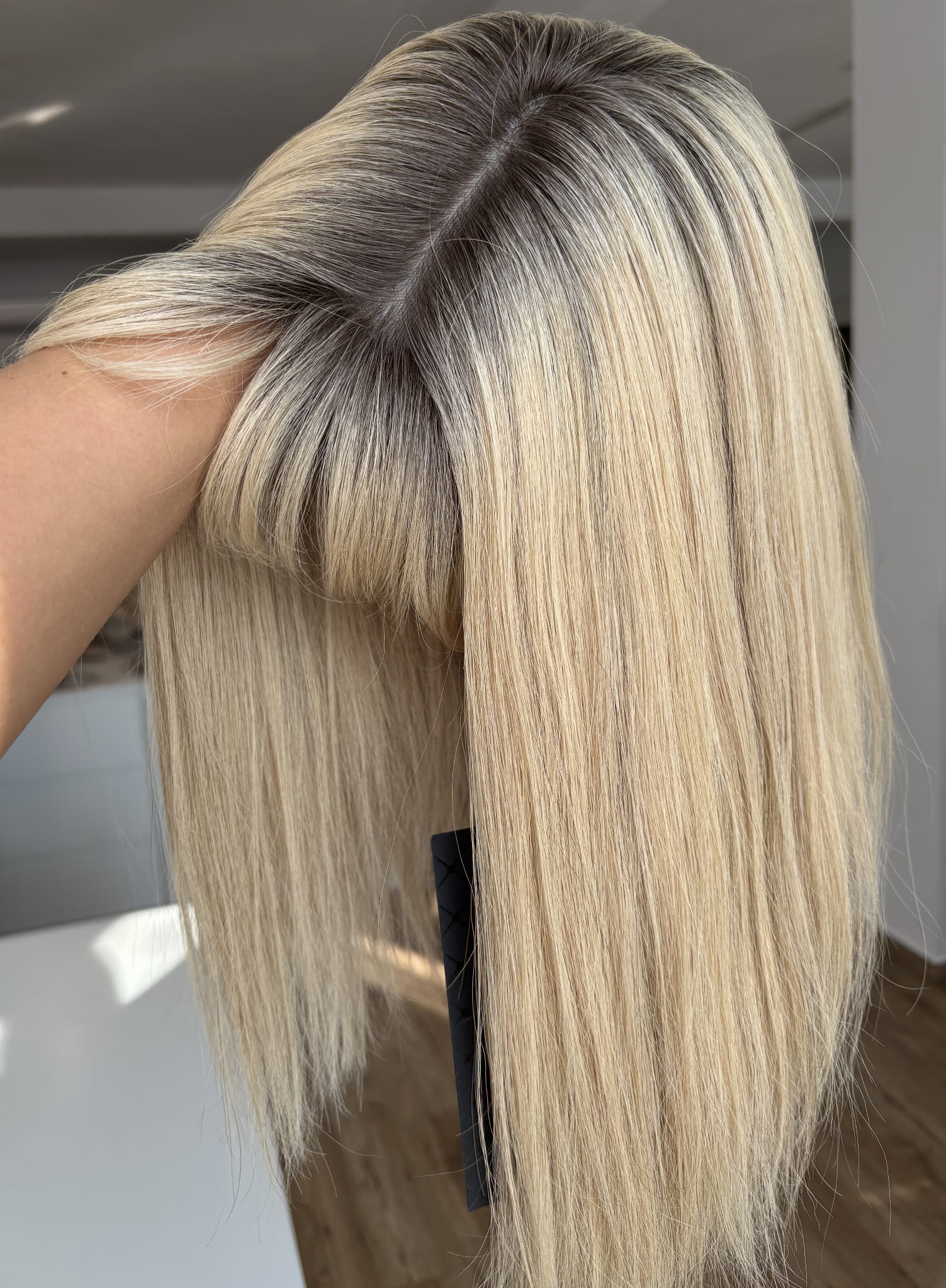 Lara BOB 28 cm 20x20 Topper do zagęszczenia clip in jasny blond z odrostem
