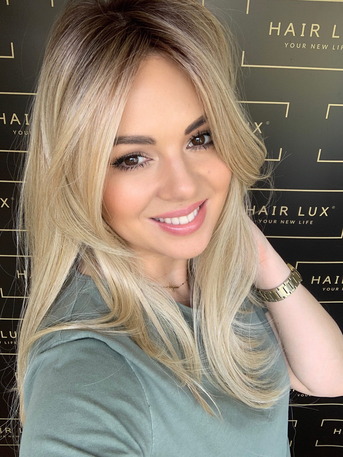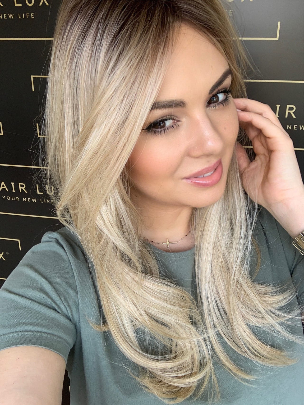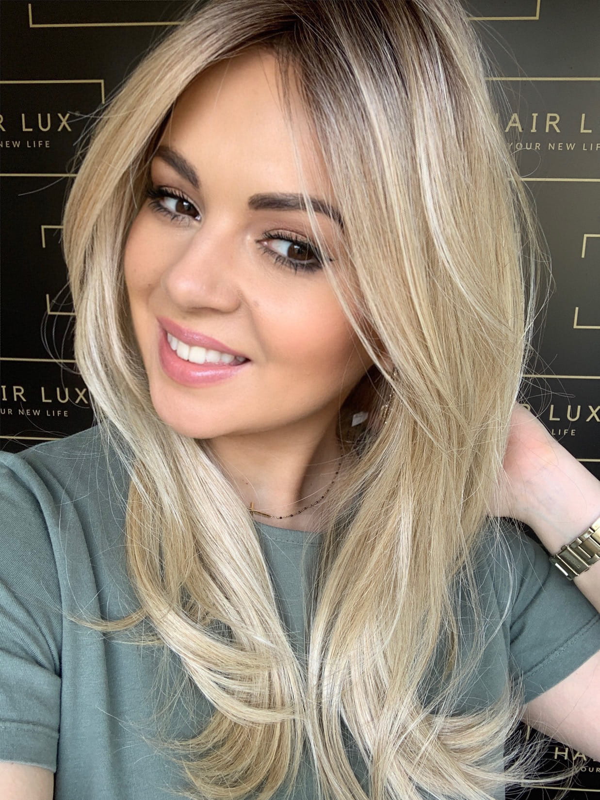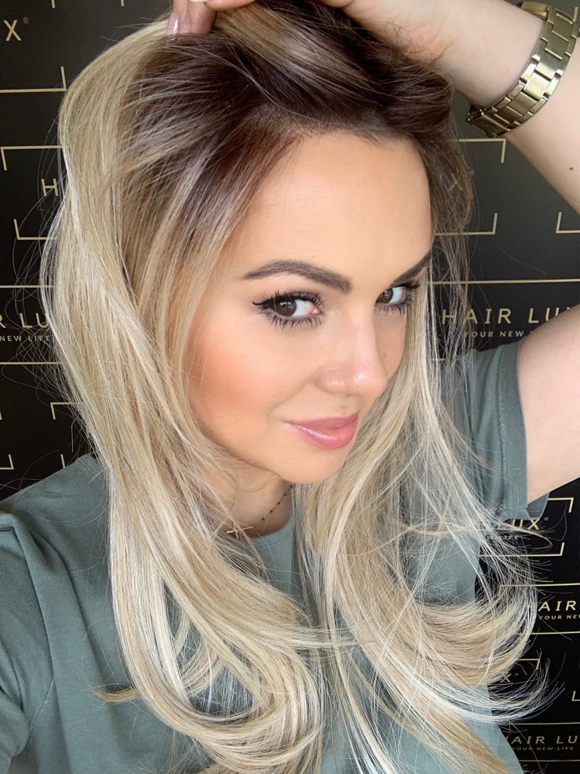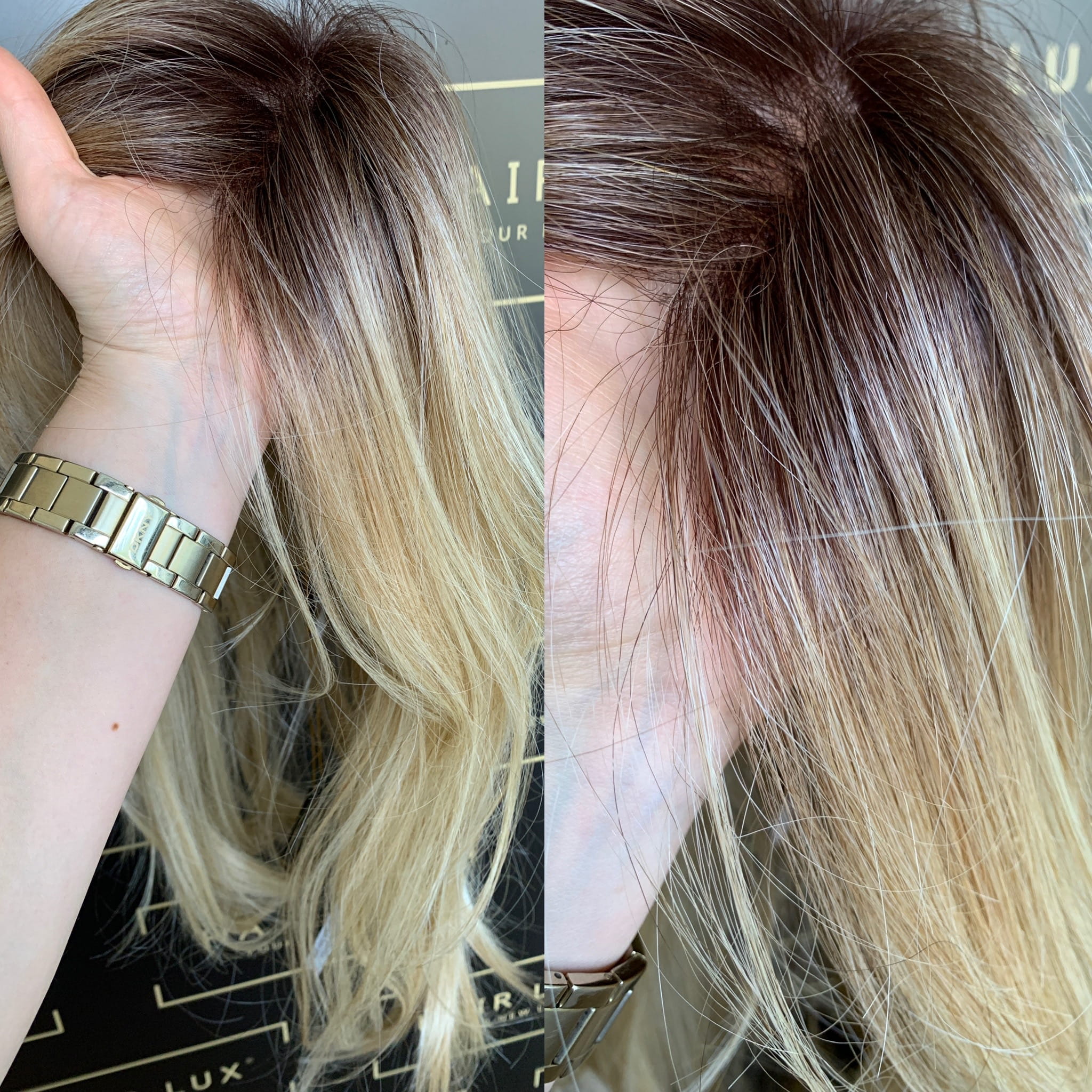 Kolor: Ciepły blond z odrostem - Honey with chai latte