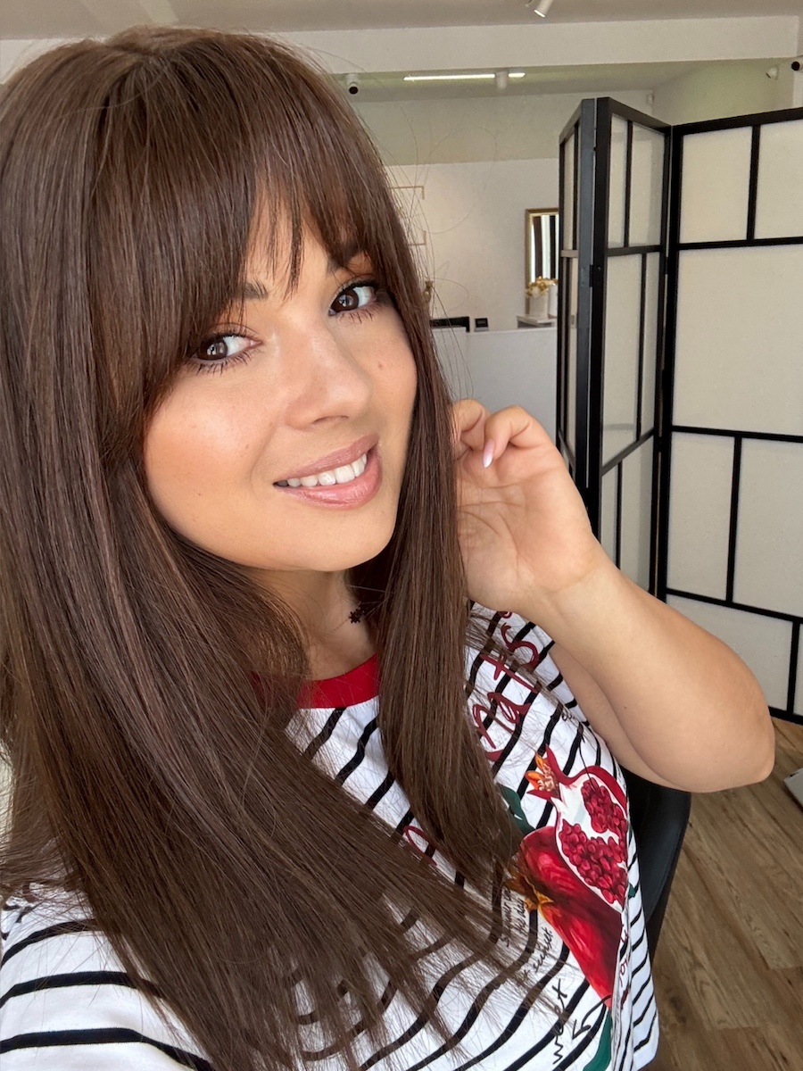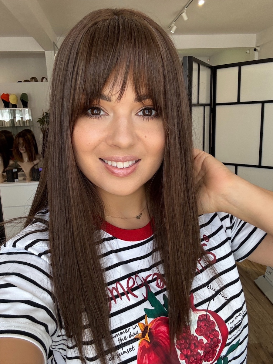 Tina z grzywką 45-50cm #4 20x20 topper naturalny clip in brąz
