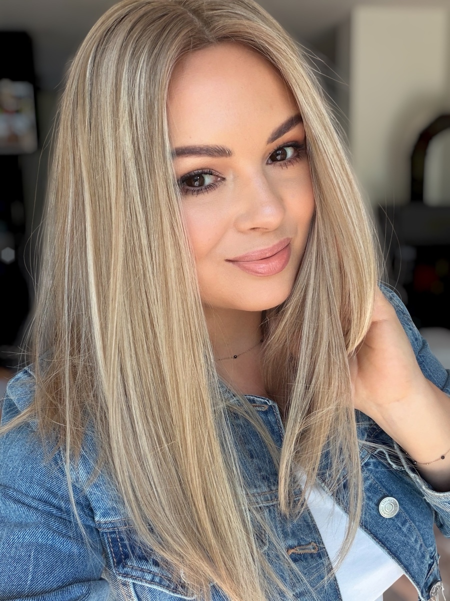 Kolor baleyage blond tworzy miękkie, naturalne przejścia i efekt profesjonalnej koloryzacji, który rozświetla twarz i dodaje lekkości całej fryzurze.