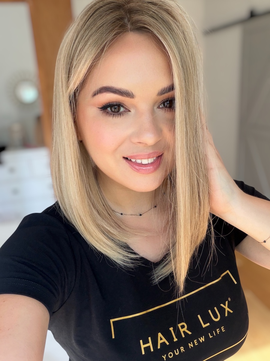 Największym wyróżnikiem modelu jest jego konstrukcja – topper łączy w sobie lekkość i delikatność lace toppera z trwałością mikroskóry, oferując jednocześnie ultrapłaski front, który idealnie przylega do skóry i daje niezwykle realistyczny efekt przy linii włosów.
