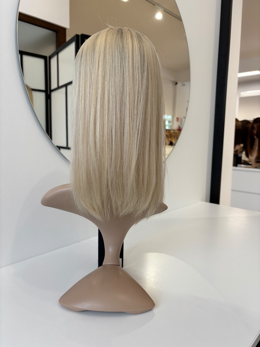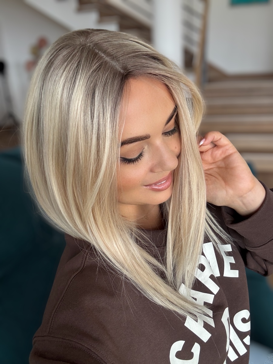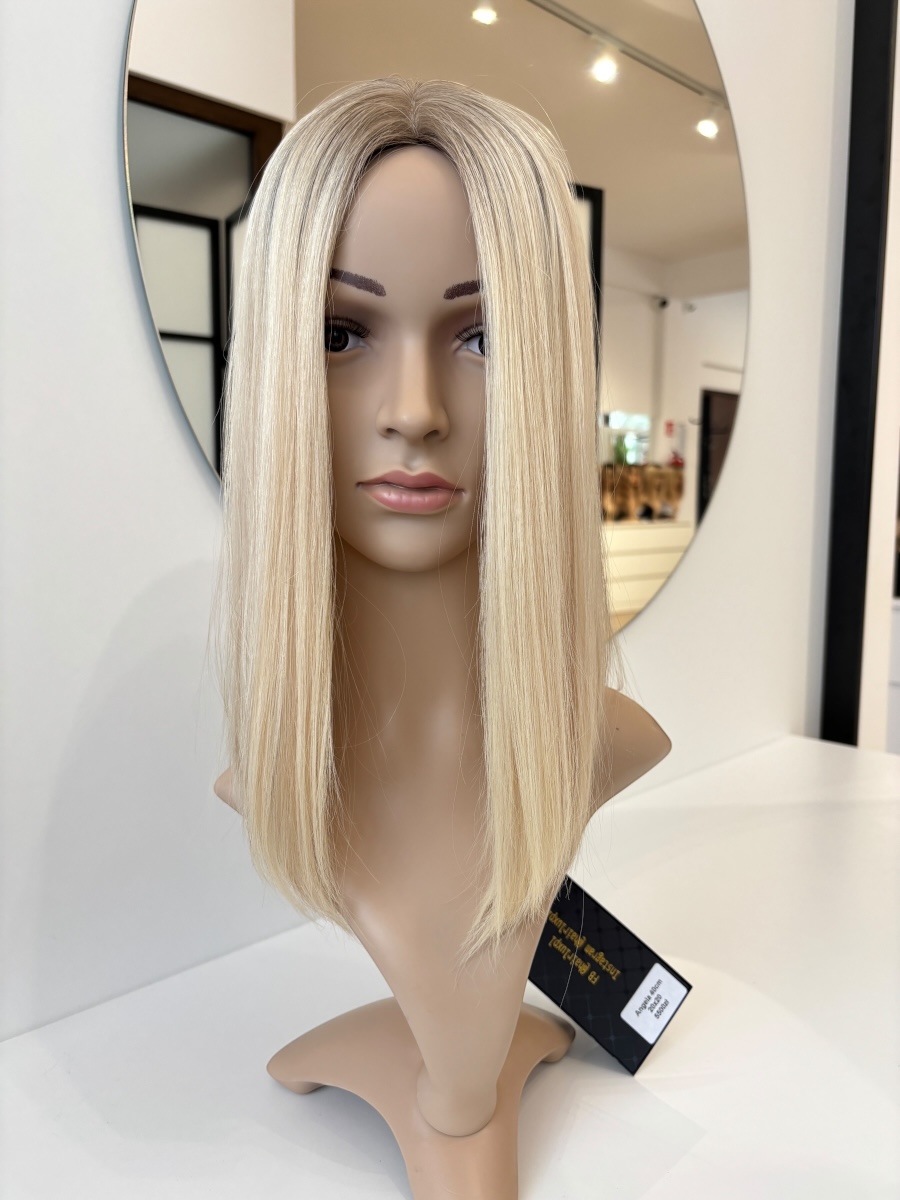 Topper z włosów naturalnych Angela 40cm balyeage blond z odrostem 20x20cm baza elastyczna z mikroskórą
