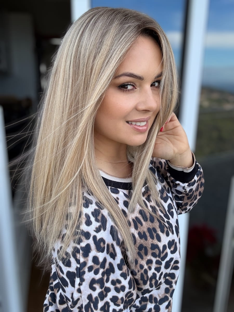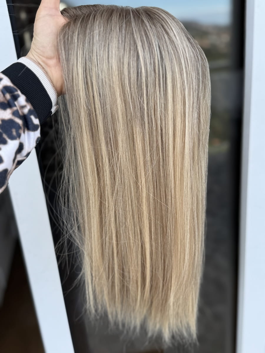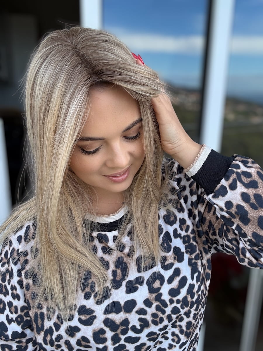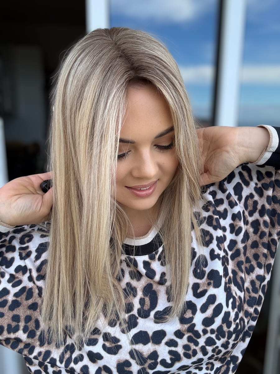 Prezentowany topper baleyage blond pozwoli Ci na eksperymentowanie z fryzurą. Możesz ją dowolnie kręcić i prostować (max temp. 160-170 stopni), a także swobodnie upinać, gdyż tupet został wykonany z wysokiej jakości włosów europejskich, które stanowią doskonały zagęszczacz. Topper wystarczy zapiąć do swoich włosów około 1 cm od początku przedziałka – tym sposobem uzyskamy najbardziej naturalny efekt.