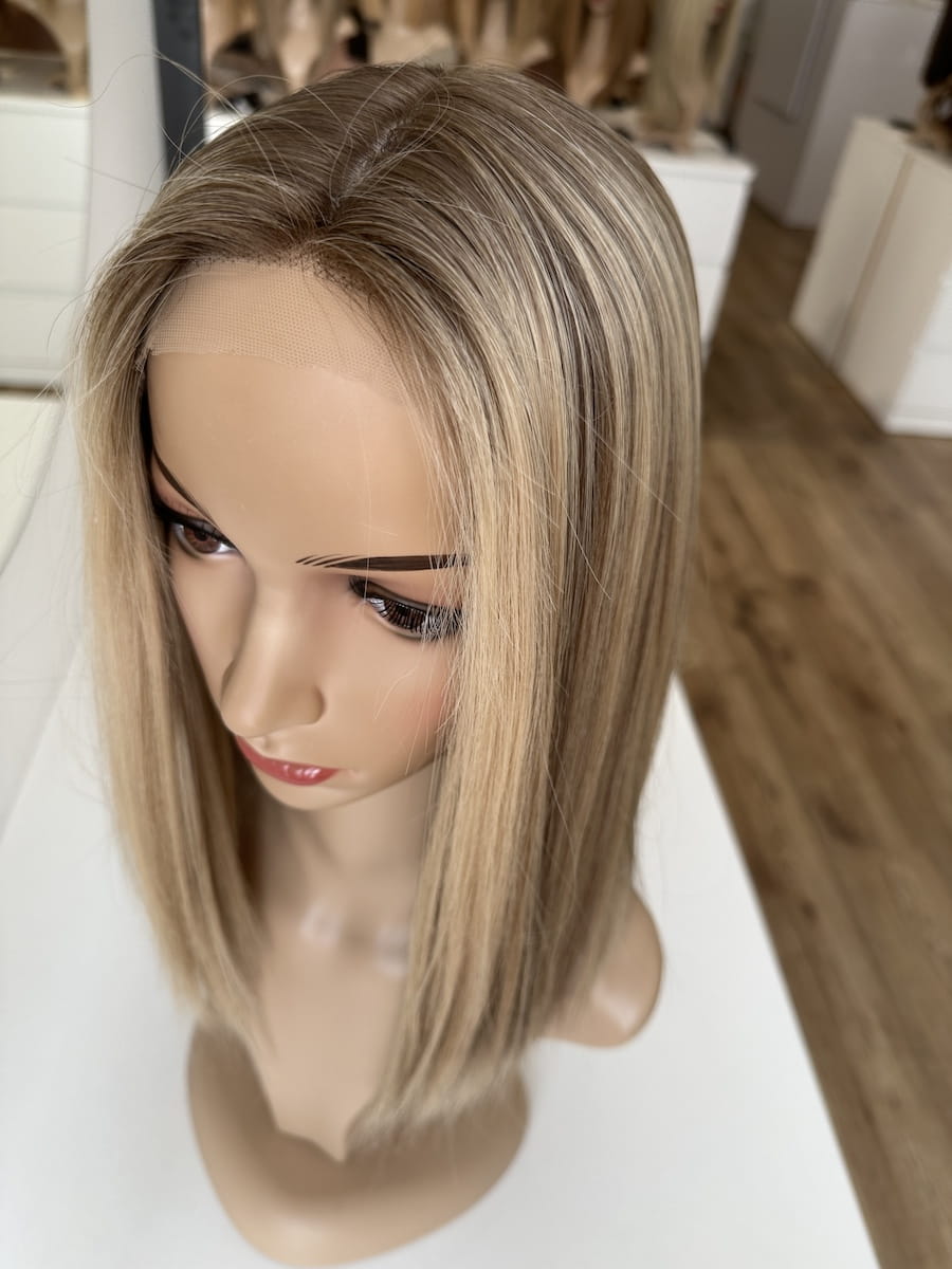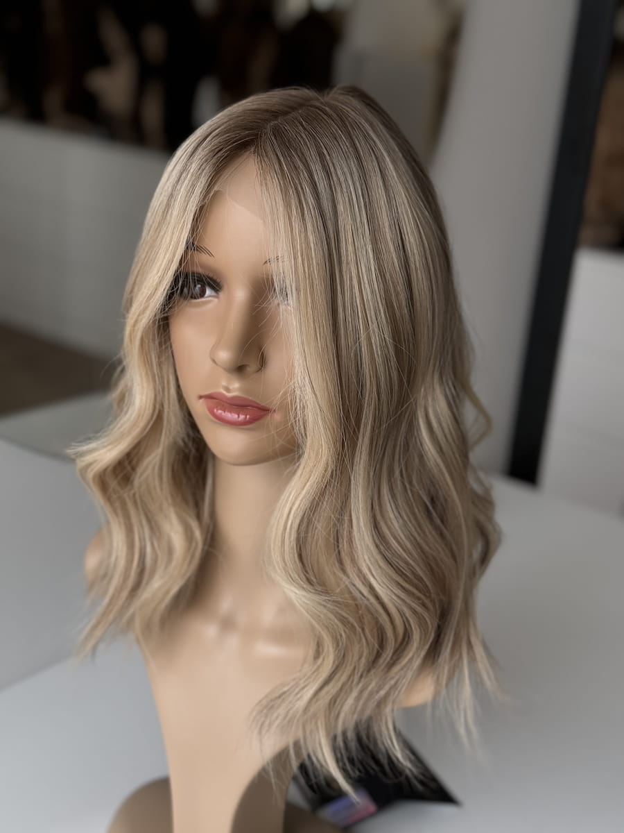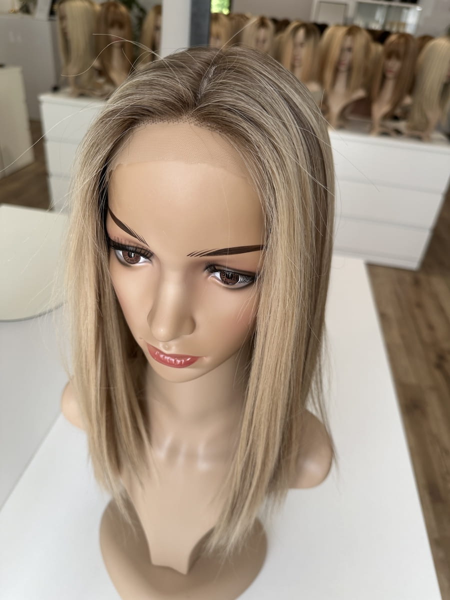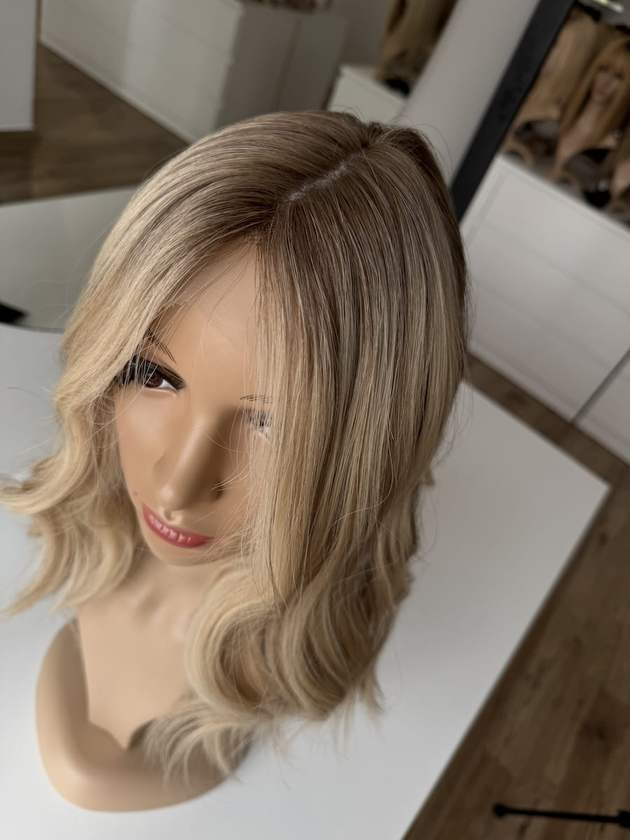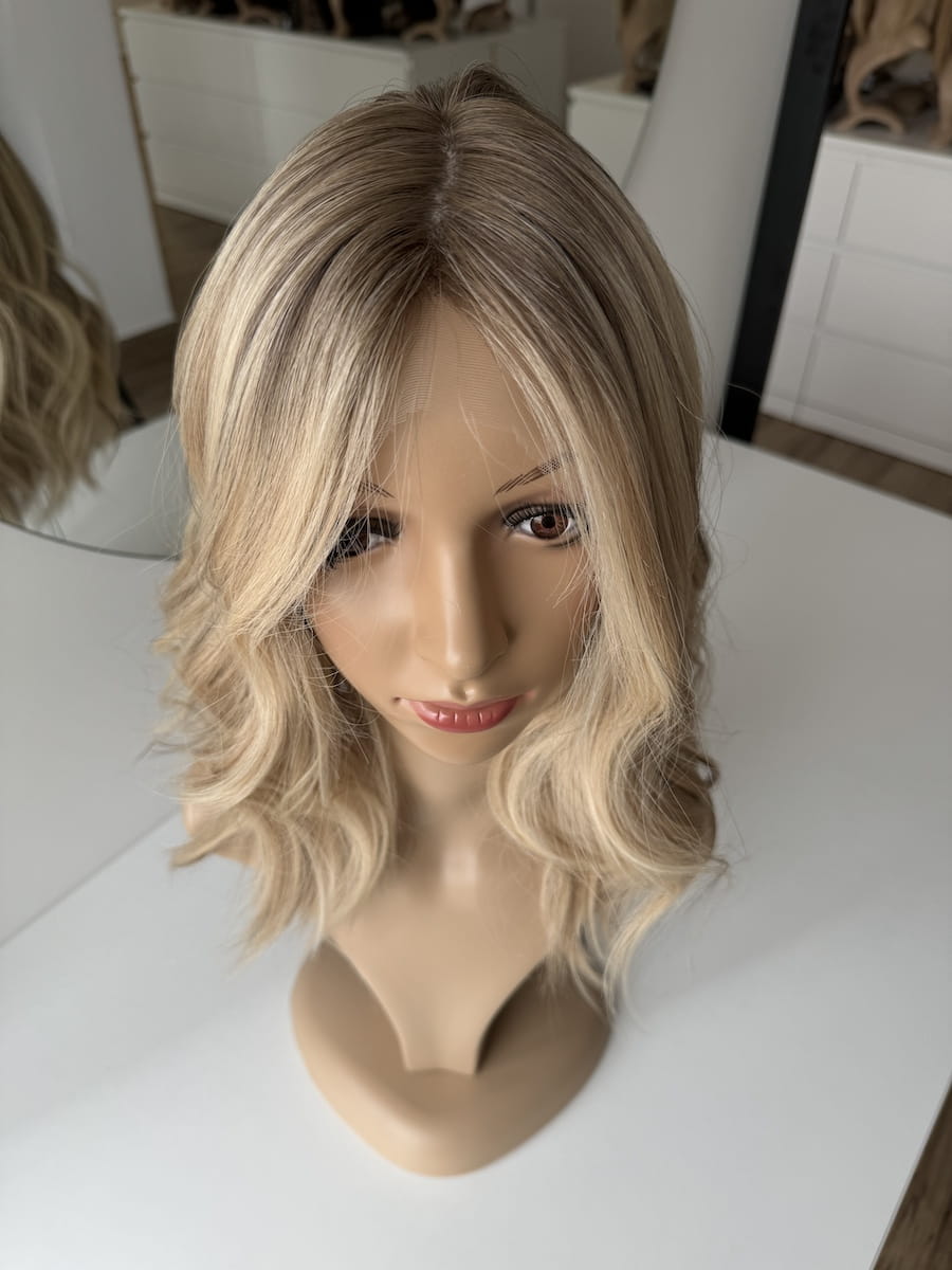 Viola lace front 40cm M peruka z włosów naturalnych chłodny blond pasemka