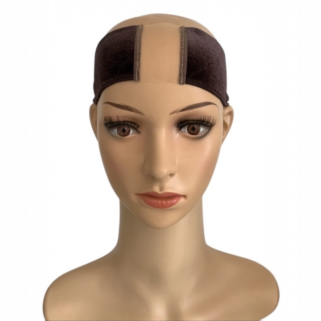 Welurowy pasek antypoślizgowy pod perukę brąz