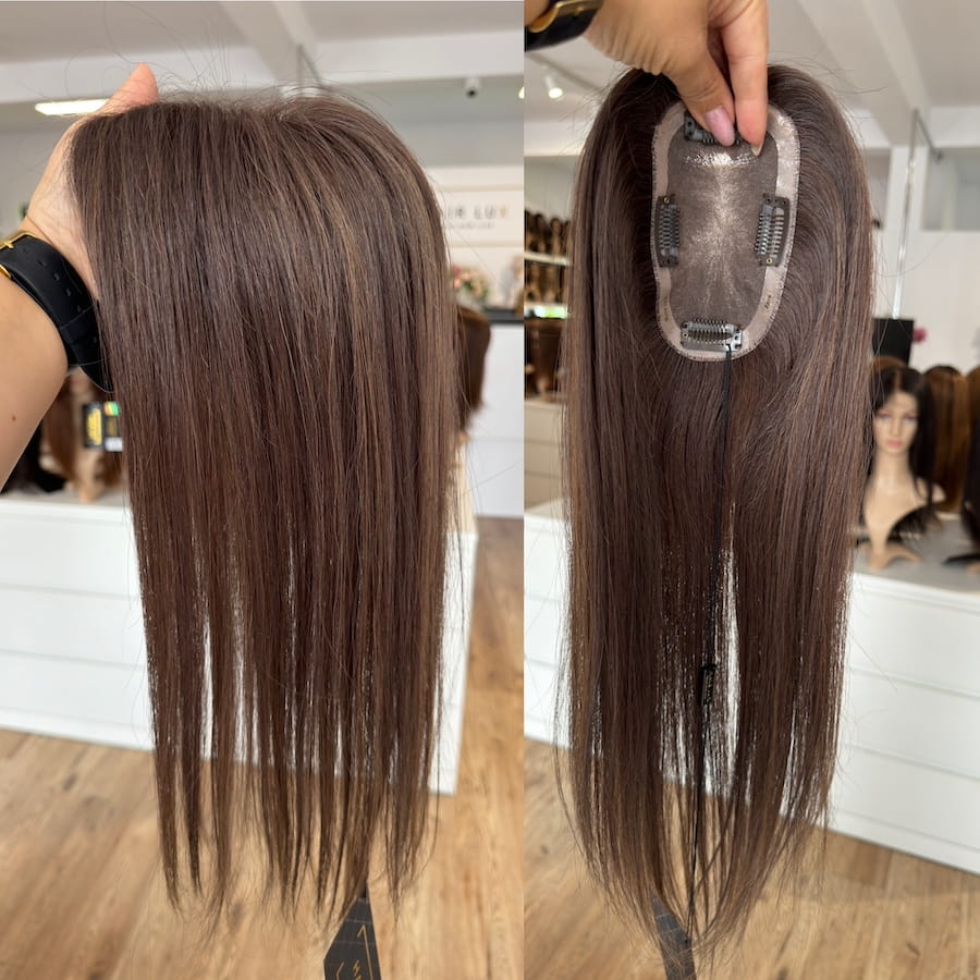 Lekka i przewiewna baza mono oraz naturalne włosy sprawiają, że topper jest praktycznie niewyczuwalny i pozwala na dowolną stylizację. Dzięki niewielkim wymiarom idealnie nadaje się do upięć.
