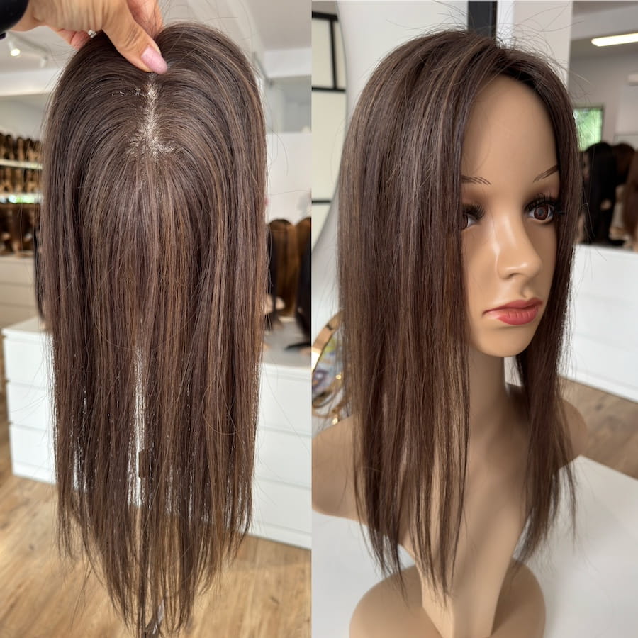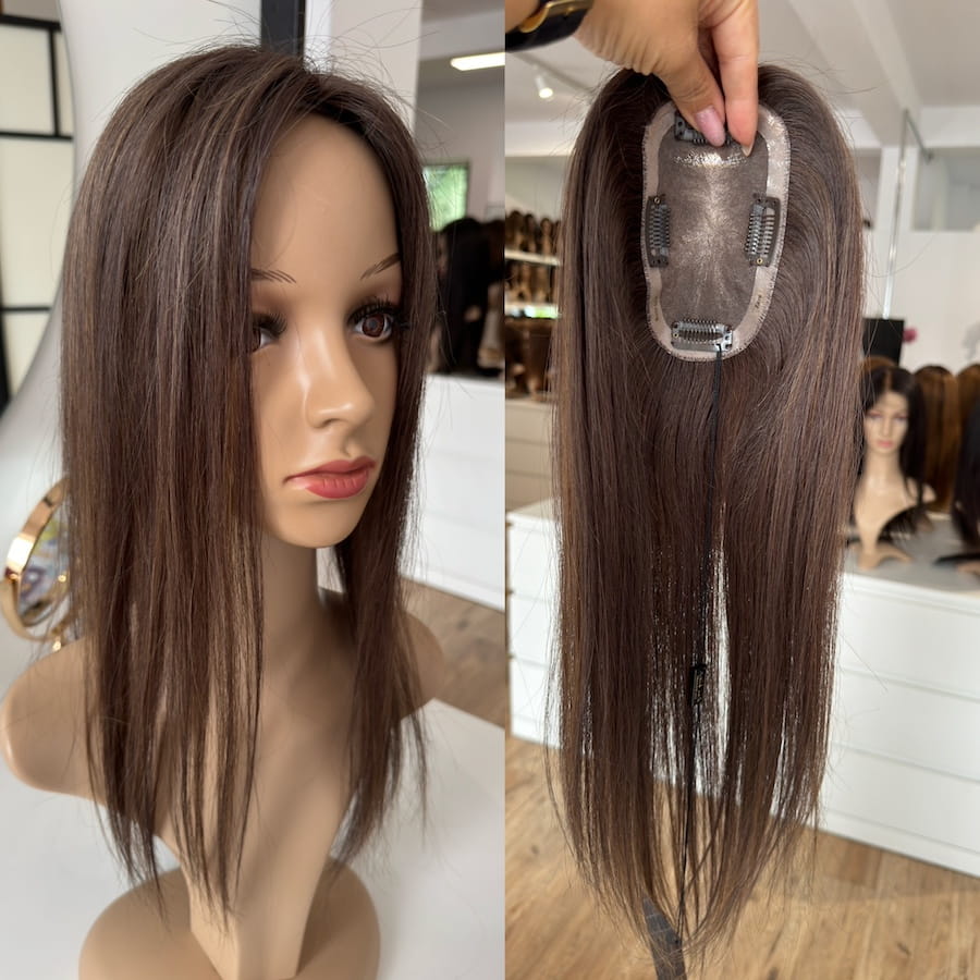 Lekka i przewiewna baza mono oraz naturalne włosy sprawiają, że topper jest praktycznie niewyczuwalny i pozwala na dowolną stylizację. Dzięki niewielkim wymiarom idealnie nadaje się do upięć.