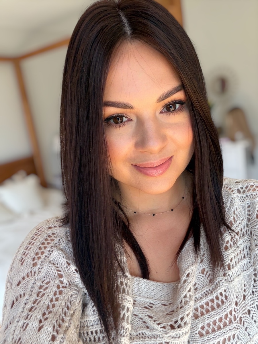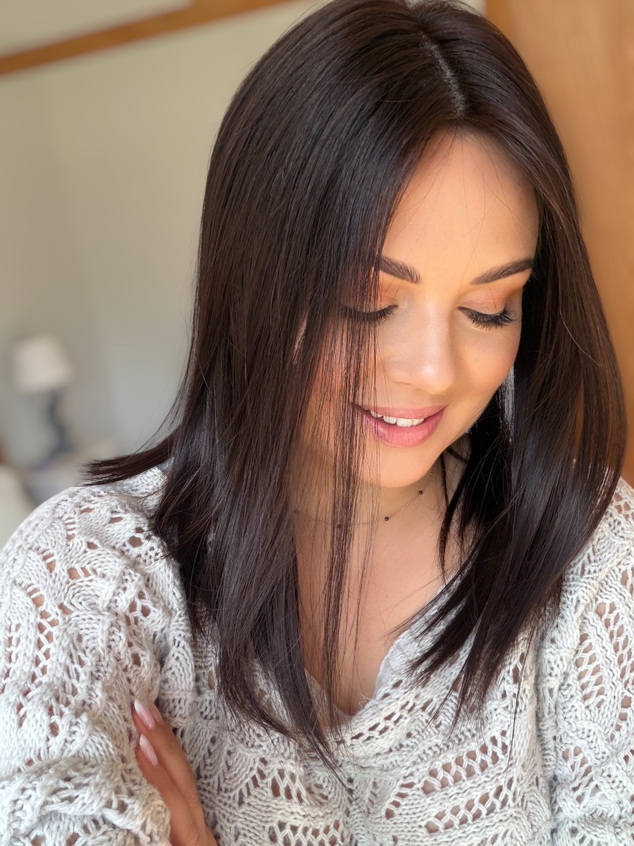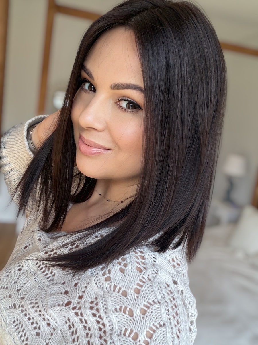 Kolor to elegancki, głęboki brąz o subtelnym, naturalnym połysku, który pięknie odbija światło i wygląda jak zdrowe, zadbane włosy.