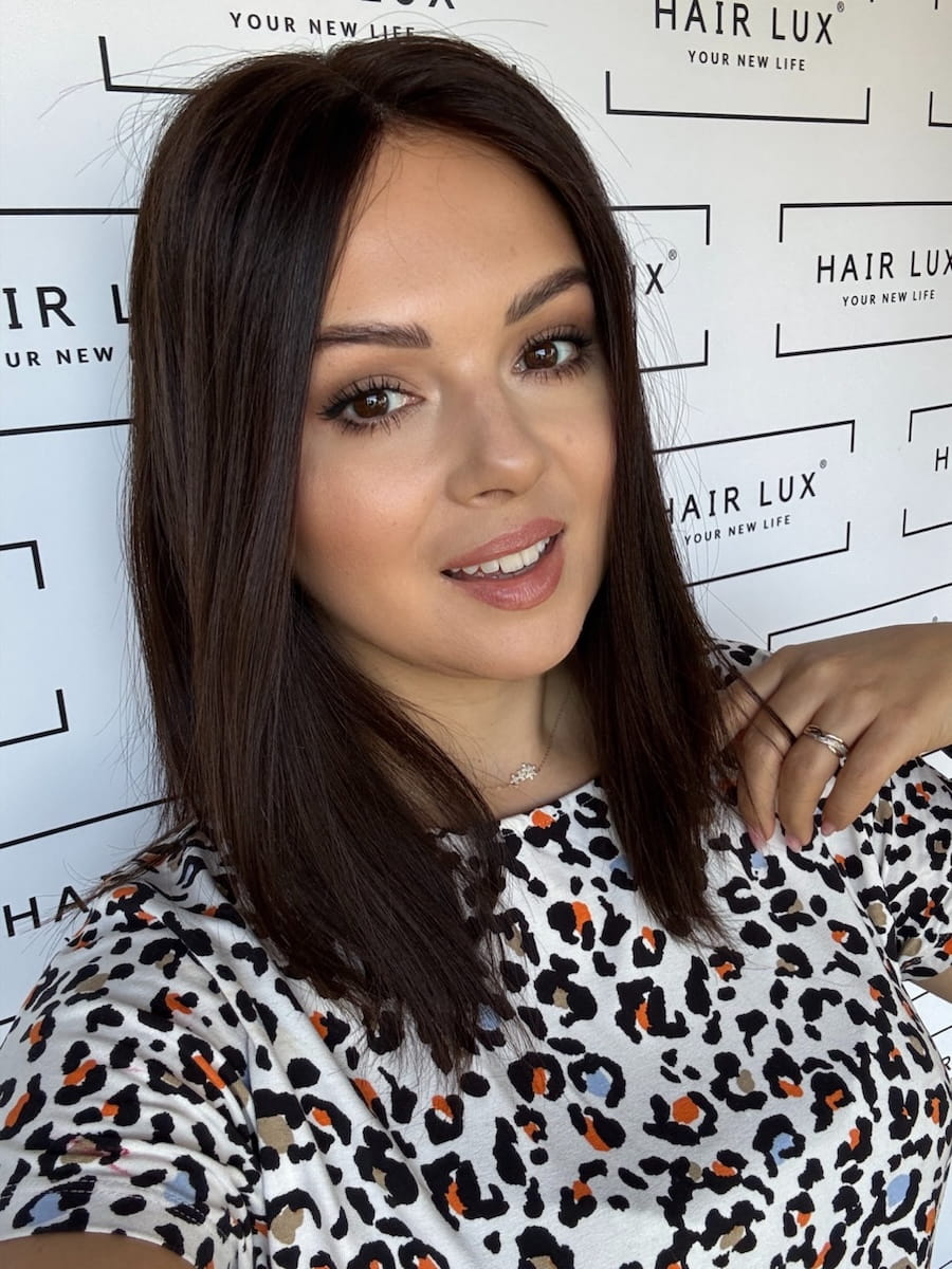 Topper damski Basia 40 cm lace 20x20 cm – czekoladowy brąz, lekki, naturalny efekt | HairLux