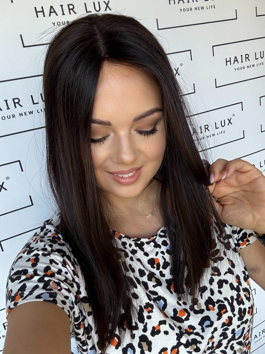 Topper Jovita 45 cm w odcieniu bardzo ciemnego brązu (#2) to idealne rozwiązanie dla kobiet, które chcą uzyskać maksymalną długość i naturalną objętość włosów bez obciążania skóry głowy.