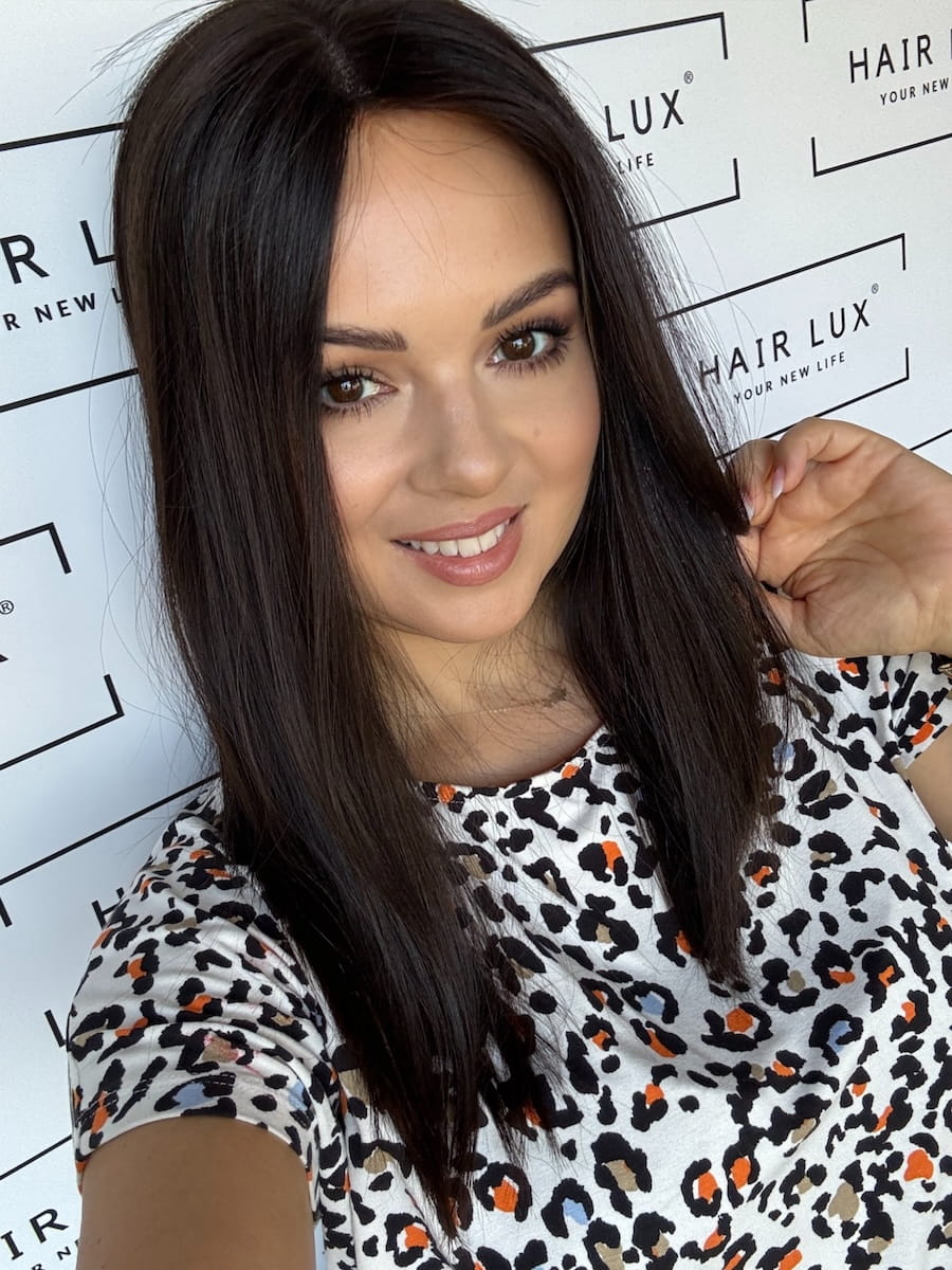 Topper wykonany jest z najwyższej jakości naturalnych włosów brazylijskich virgin premium, które charakteryzują się miękkością, naturalnym połyskiem oraz możliwością stylizacji jak własne włosy.