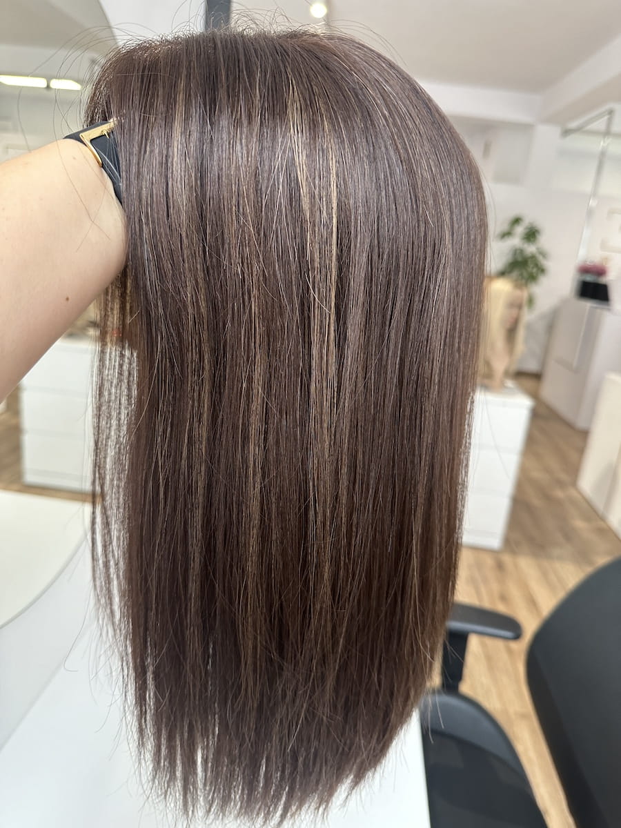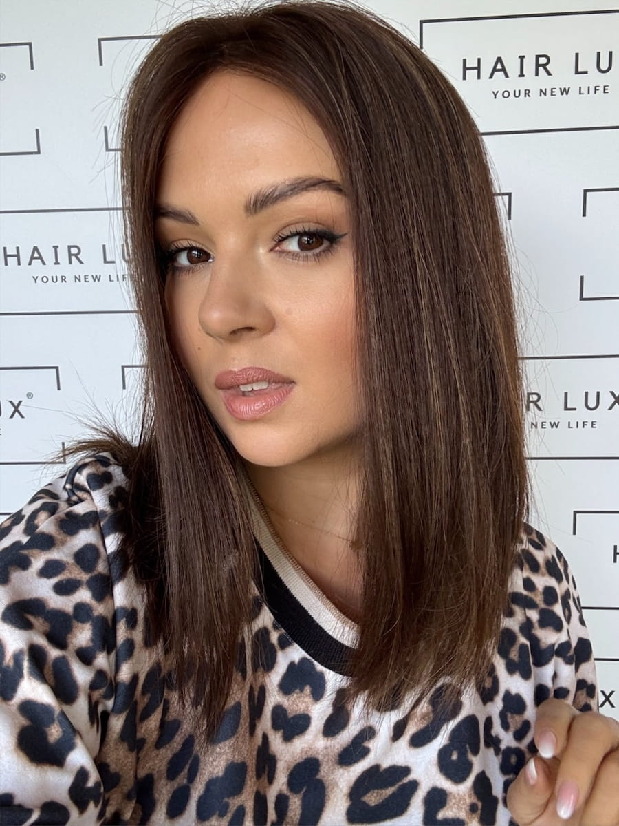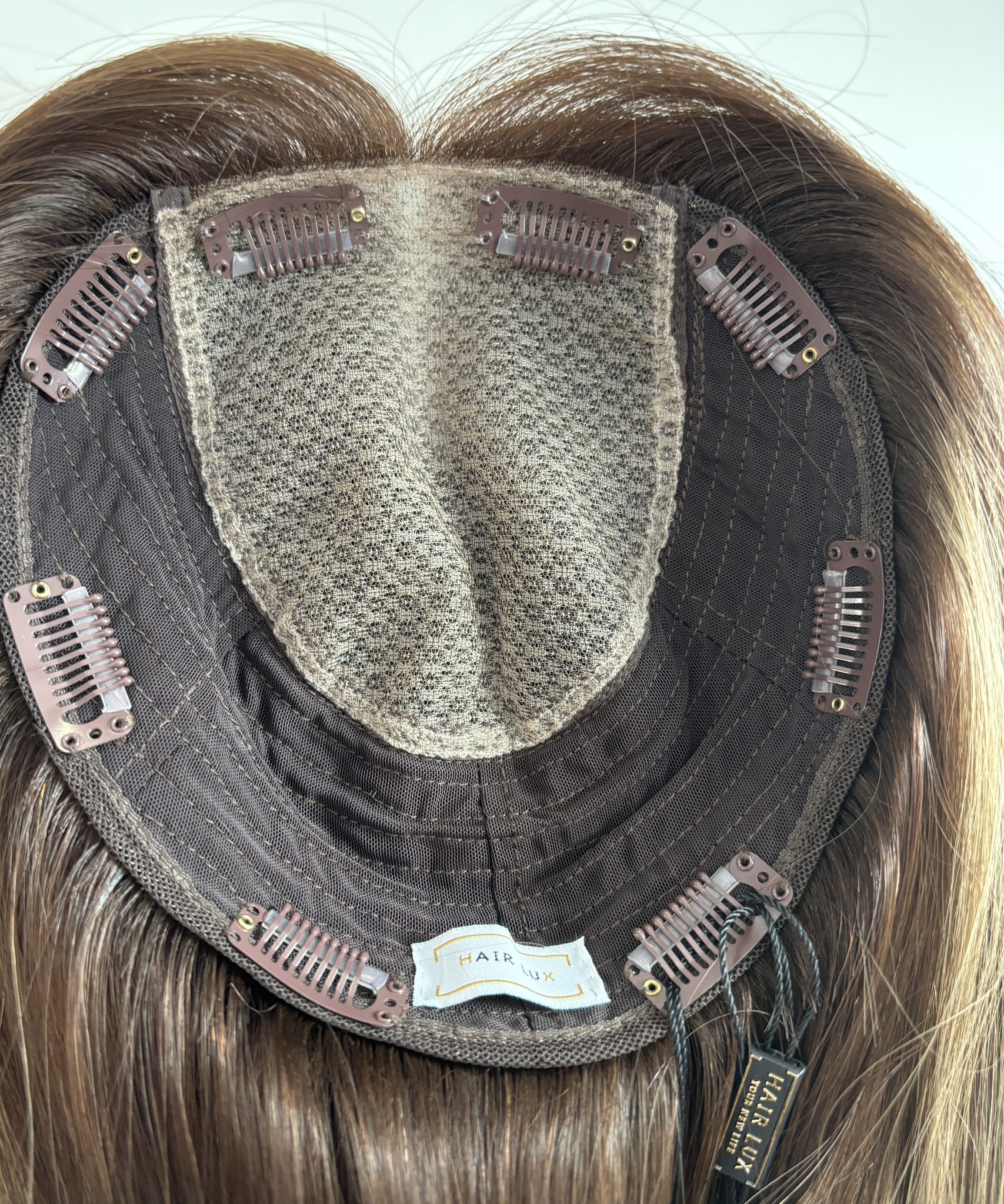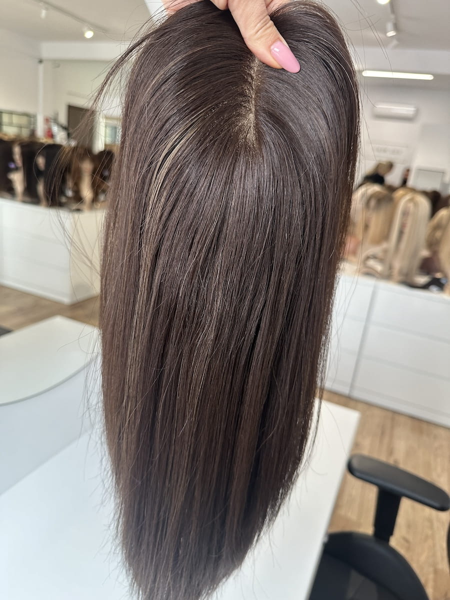 Topper wykonany jest z najwyższej jakości naturalnych włosów brazylijskich premium, które charakteryzują się naturalnym połyskiem i możliwością dowolnej stylizacji.