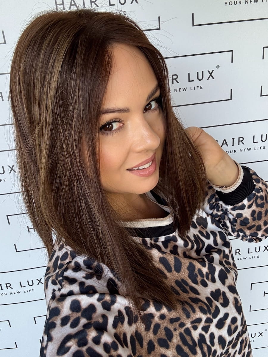 Topper damski Kamila 40 cm lace 20x20 cm – brąz z refleksami, lekki, naturalny efekt | HairLux