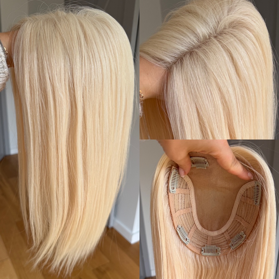 Topper naturalny ELVI 40 cm – jasny blond #60 bez odrostu | baza 15x17 cm